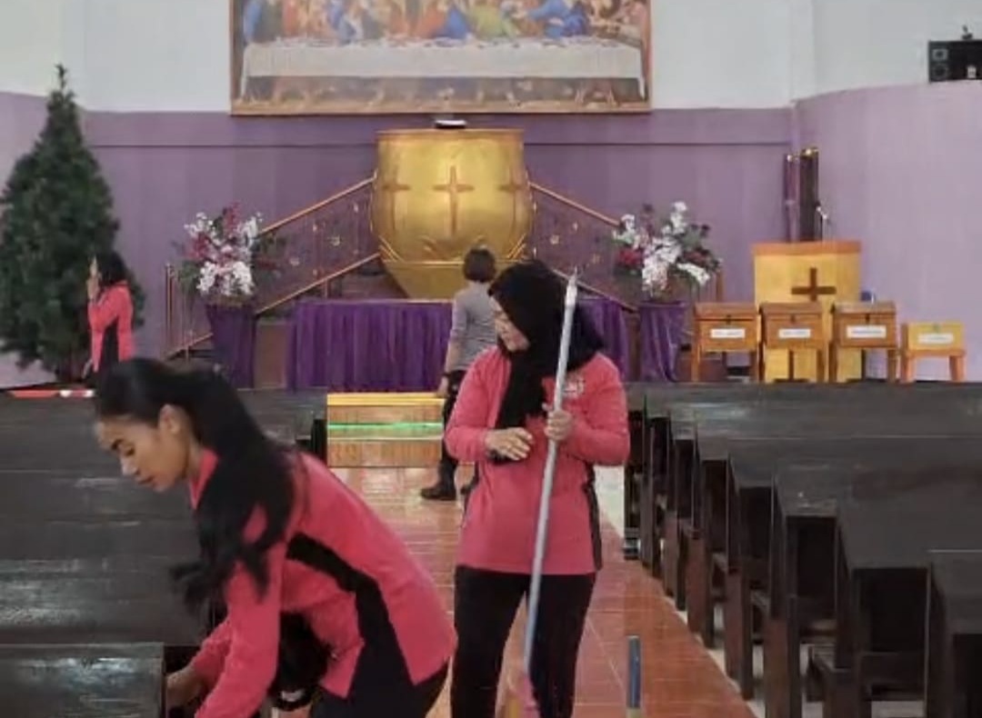 “Melalui kegiatan ini, kami berharap suasana gereja menjadi lebih bersih dan nyaman bagi seluruh jemaat yang akan melaksanakan ibadah Natal,” ujarnya.