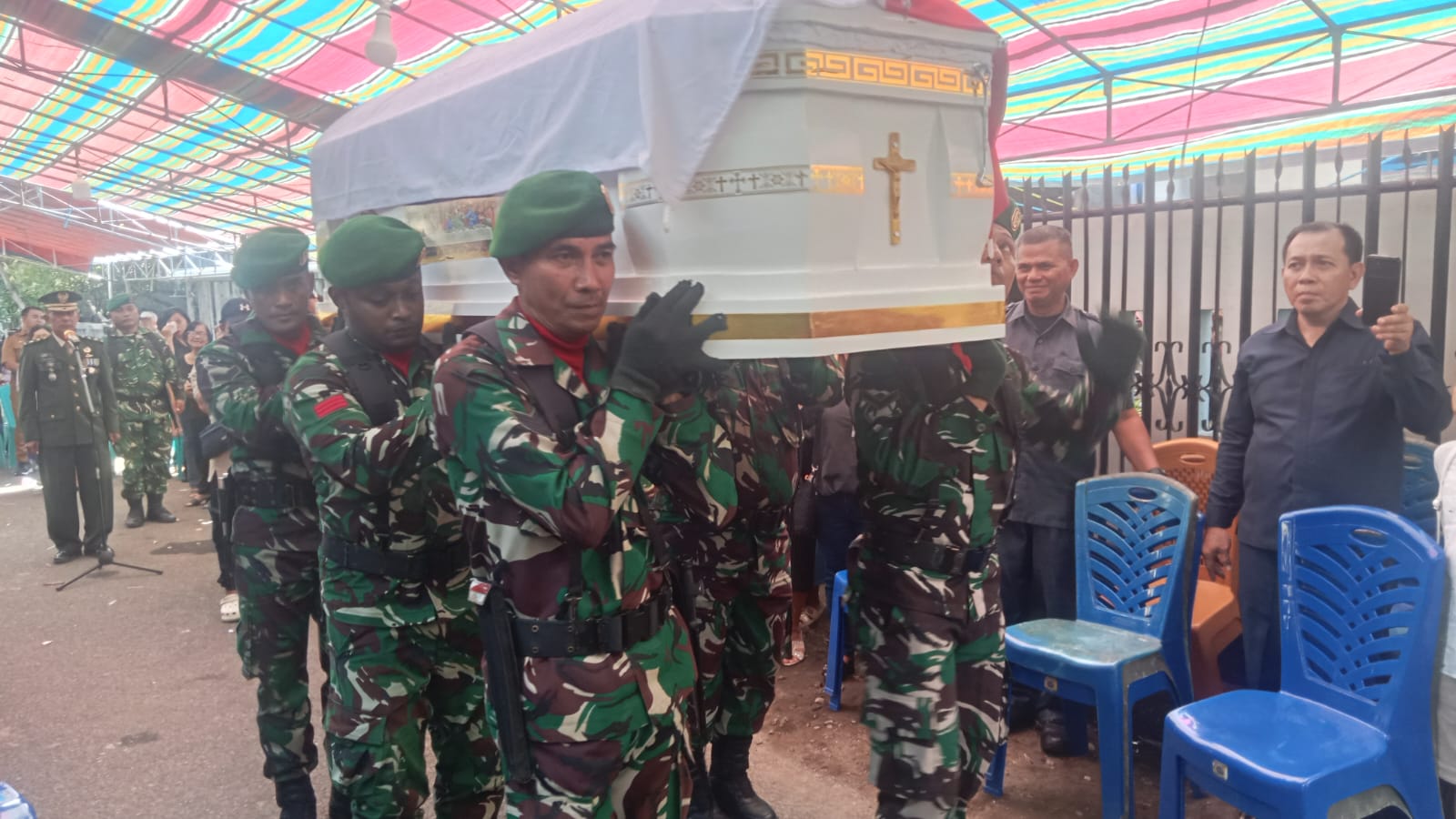 Minahasa Utara – Personel Kodim 1310/Bitung menyelenggarakan sekaligus mengikuti upacara persemayaman Almarhum Peltu (Purn) Johanes Daleno sebagai bentuk penghormatan terakhir kepada prajurit TNI yang telah mengabdikan diri kepada bangsa dan negara, bertempat di Kediaman Almarhum, Perum Rizky Jaga 8, Desa Kolongan Tetempangan, Kec. Kalawat, Kabupaten Minahasa Utara, Selasa (31/03/2026).