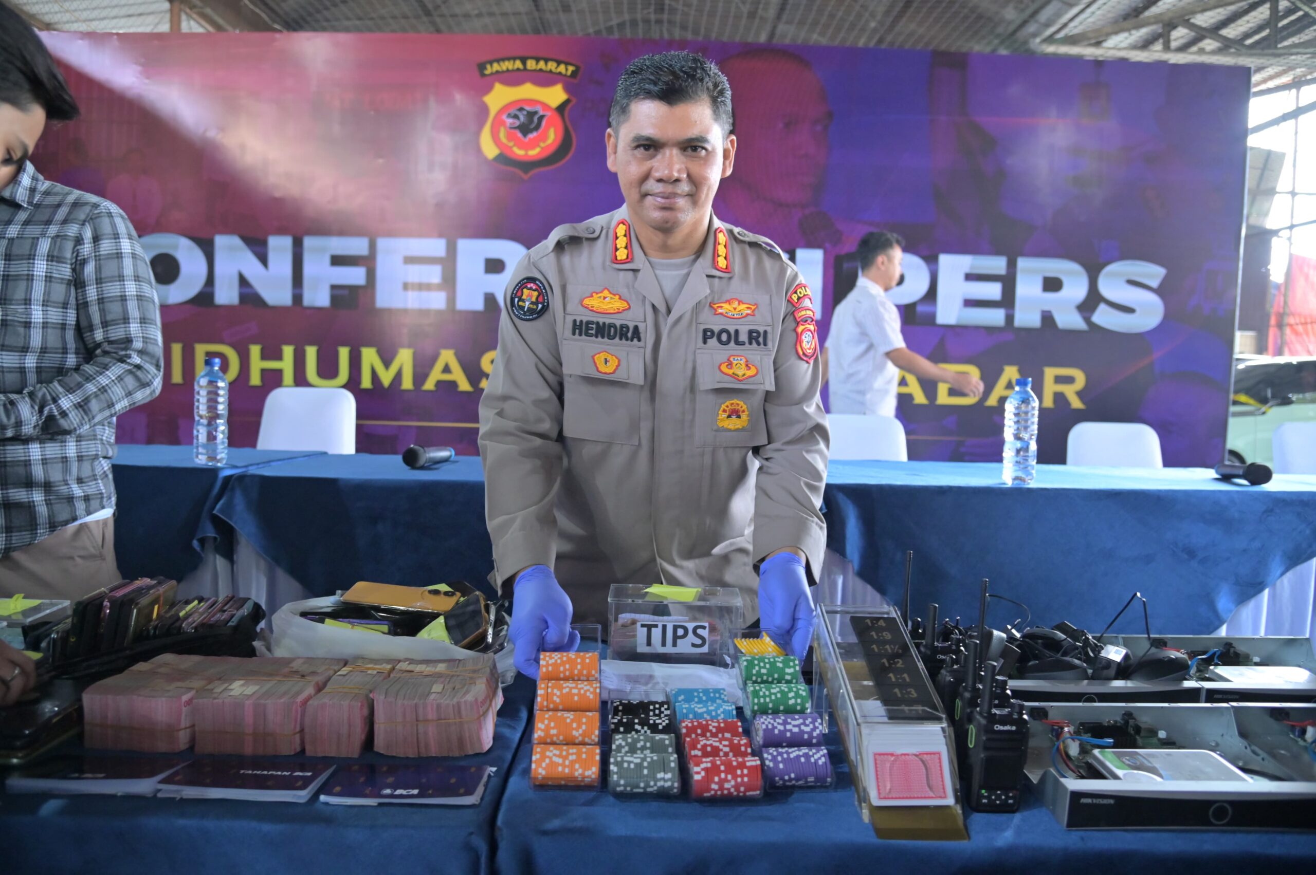 “Ada dua penyelenggara yang sudah kita tetapkan sebagai tersangka, itu dengan inisial HP dan CW kemudian ada pemain yang selanjutnya itu kurang lebih ada 18 pemain dan satu kelompok lagi itu adalah orang yang terlibat dalam perjudian, penyelenggara operator, kasir kemudian pemain kartu dan sebagainya. Jumlahnya semuanya 44 orang,” ungkap Rudi dalam Konferensi Pers yang digelar di tempat kejadian perkara bersama jajaran Forkompimda Jabar, Rabu (18/6/2025).