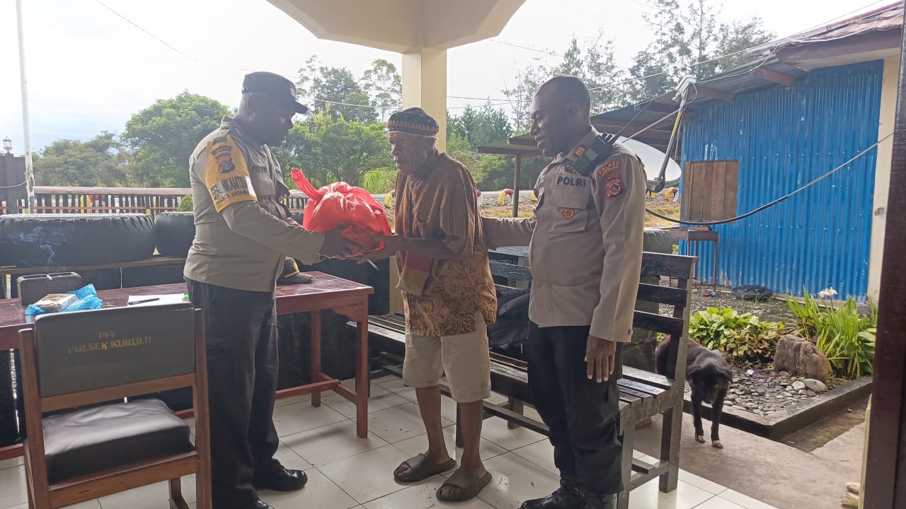Kapolsek Kurulu AKP Yulianus Giay, SH memimpin kegiatan tersebut bersama Kanit Binmas, Kanit Reskrim, Bhabinkamtibmas, serta personel Polsek lainnya. Bantuan yang diberikan meliputi beras, gula, kopi, dan rokok, diserahkan langsung kepada Kepala Suku Yiwika, Diorek Mabel.