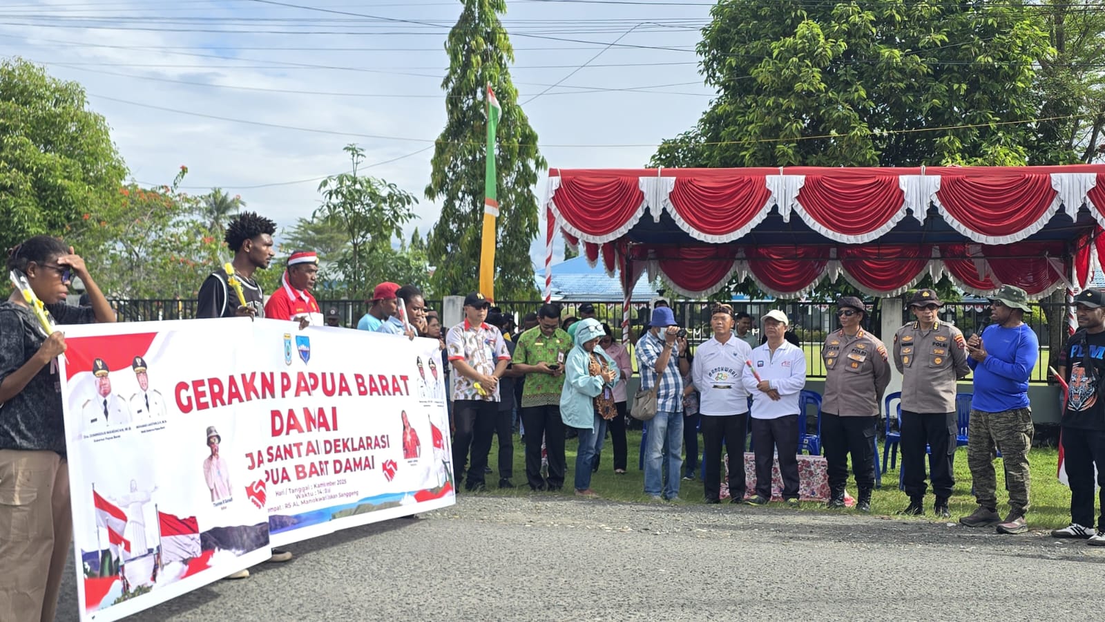 Manokwari, Papua Barat – Pemerintah Provinsi Papua Barat bersama berbagai elemen masyarakat, tokoh pemuda, mahasiswa, tokoh agama, serta Forkopimda melaksanakan kegiatan Jalan Santai dan Deklarasi Papua Barat Damai, bertempat di Kabupaten Manokwari. Kegiatan ini berlangsung mulai pukul 14.00 hingga 17.00 WIT dengan diikuti sekitar 500 peserta. Kamis (4/9)