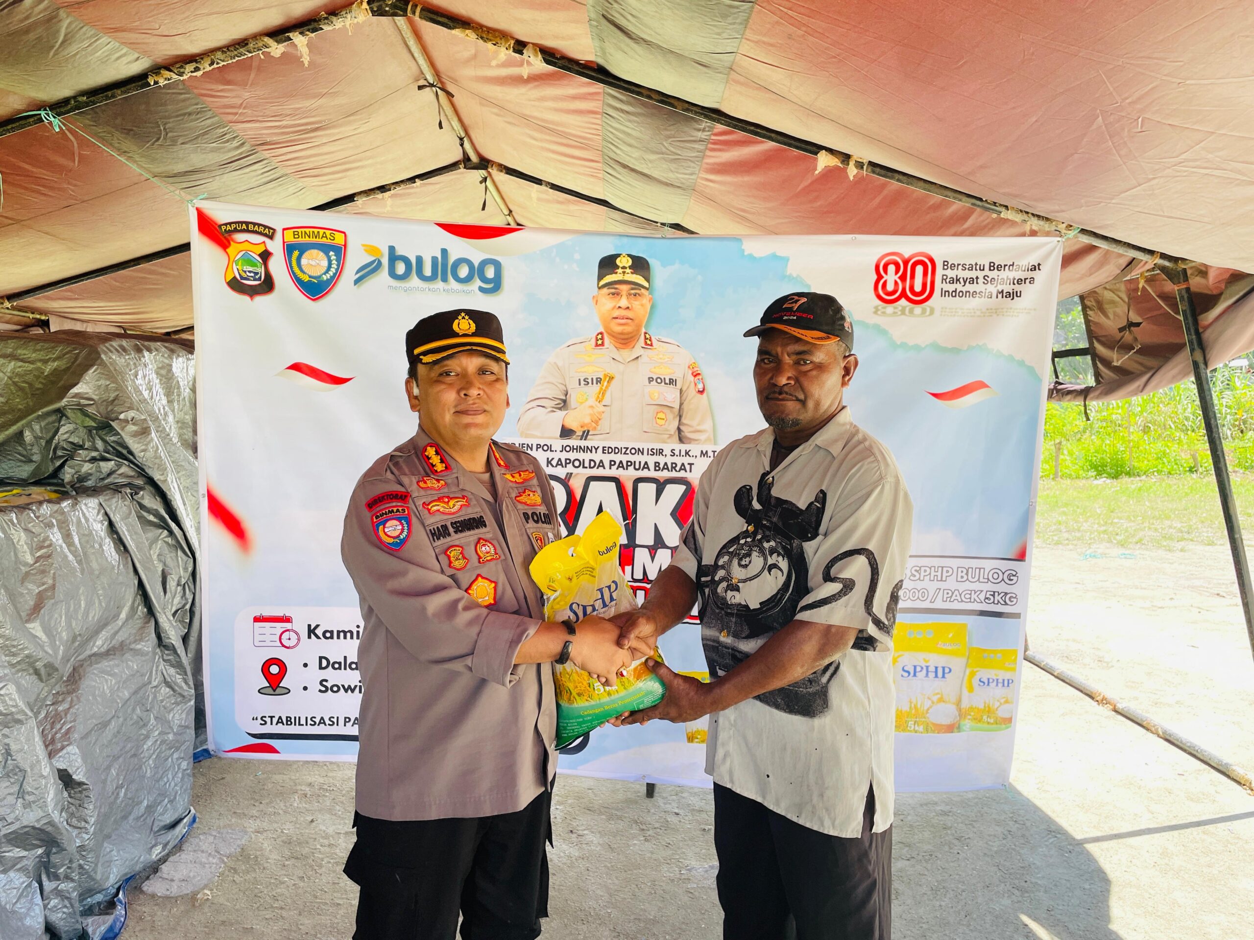 Kapolda Papua Barat Irjen Pol Johnny Eddizon Isir, S. I. K., M. T. C. P. melalui Dir Binmas Polda Papua Barat Kombes Pol. Hari S. Sembiring, S.I.K., mengatakan bahwa setiap senyum yang terlihat saat warga pulang membawa beras menjadi semangat bagi Polri untuk terus berbuat. Dalam mendukung program pemerintah, sekaligus wujud kepedulian sosial terhadap masyarakat, khususnya menjelang momentum Hari Kemerdekaan Republik Indonesia ke-80.