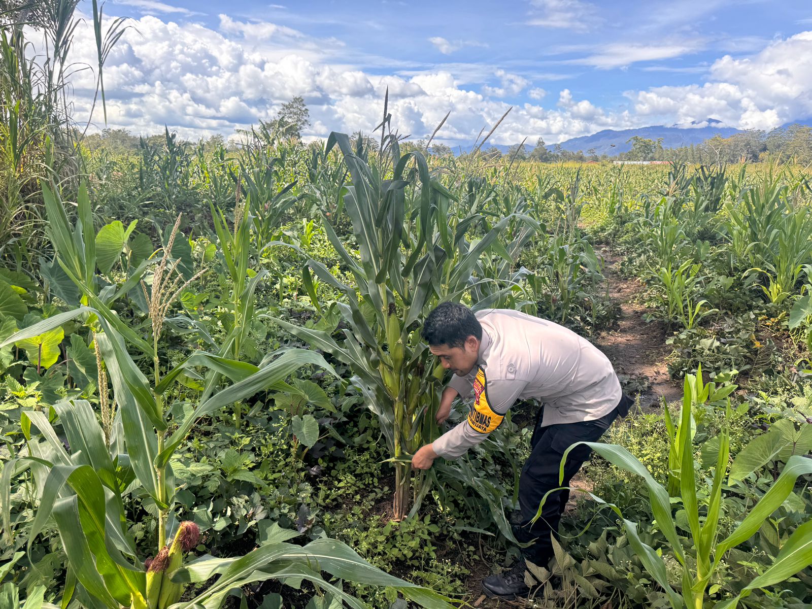 Jayawijaya – Polsek Kawasan Bandara Wamena terus mendukung upaya pemerintah dalam memperkuat program ketahanan pangan nasional. Pada Sabtu (6/12/5) siang. Kanit Binmas Polsek Kawasan Bandara Aipda Achmad Cahyono, S.H., bersama Tim melaksanakan kegiatan pengecekan perkembangan tanaman jagung pada lahan pertanian masyarakat di Kampung Wesagenya, Distrik Wesaput.