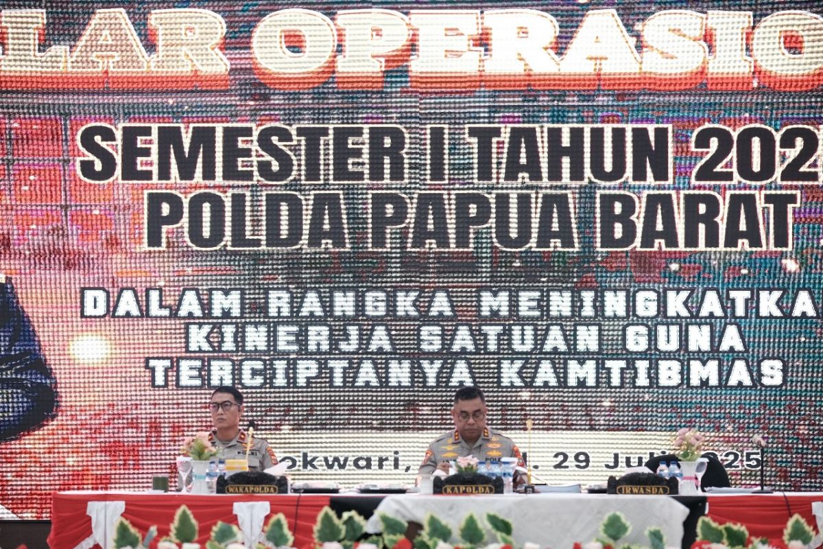 Papua Barat – Kepolisian Daerah Papua Barat menggelar Gelar Operasional Semester I Tahun 2025 pada 28–29 Juli 2025 bertempat di Gedung Arfak, Mapolda Papua Barat. Kegiatan ini dipimpin langsung oleh Kapolda Papua Barat, Irjen Pol. Johnny Eddizon Isir, S.I.K., M.T.C.P., dan dihadiri oleh seluruh Pejabat Utama (PJU), Kapolresta serta para Kapolres jajaran.