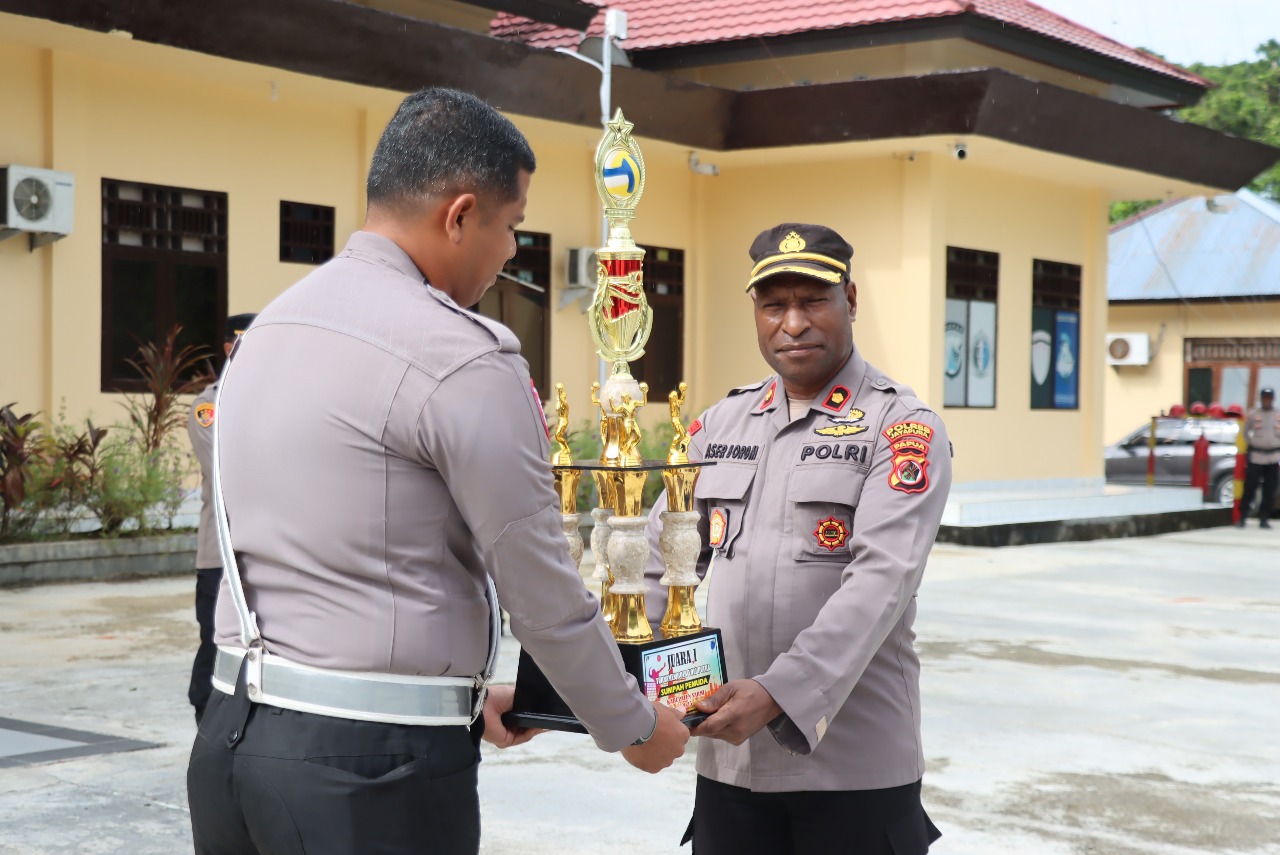 Kapolres Sarmi menyampaikan apresiasinya kepada seluruh anggota tim voli atas kerja keras, kekompakan, dan semangat juang yang ditunjukkan selama pertandingan.