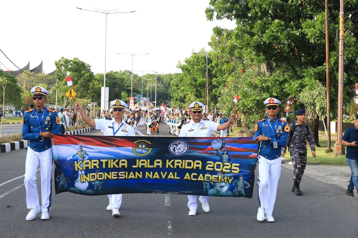 “Kegiatan kirab kota ini merupakan rangkaian kegiatan KJK 2025, selain menampilkan Drumband GS dari para Taruna, kirab ini juga memperkenalkan KRI Bima Suci ” ujar Dansatgas KJK 2024 Letkol Laut (P) Sugeng Hariyanto.