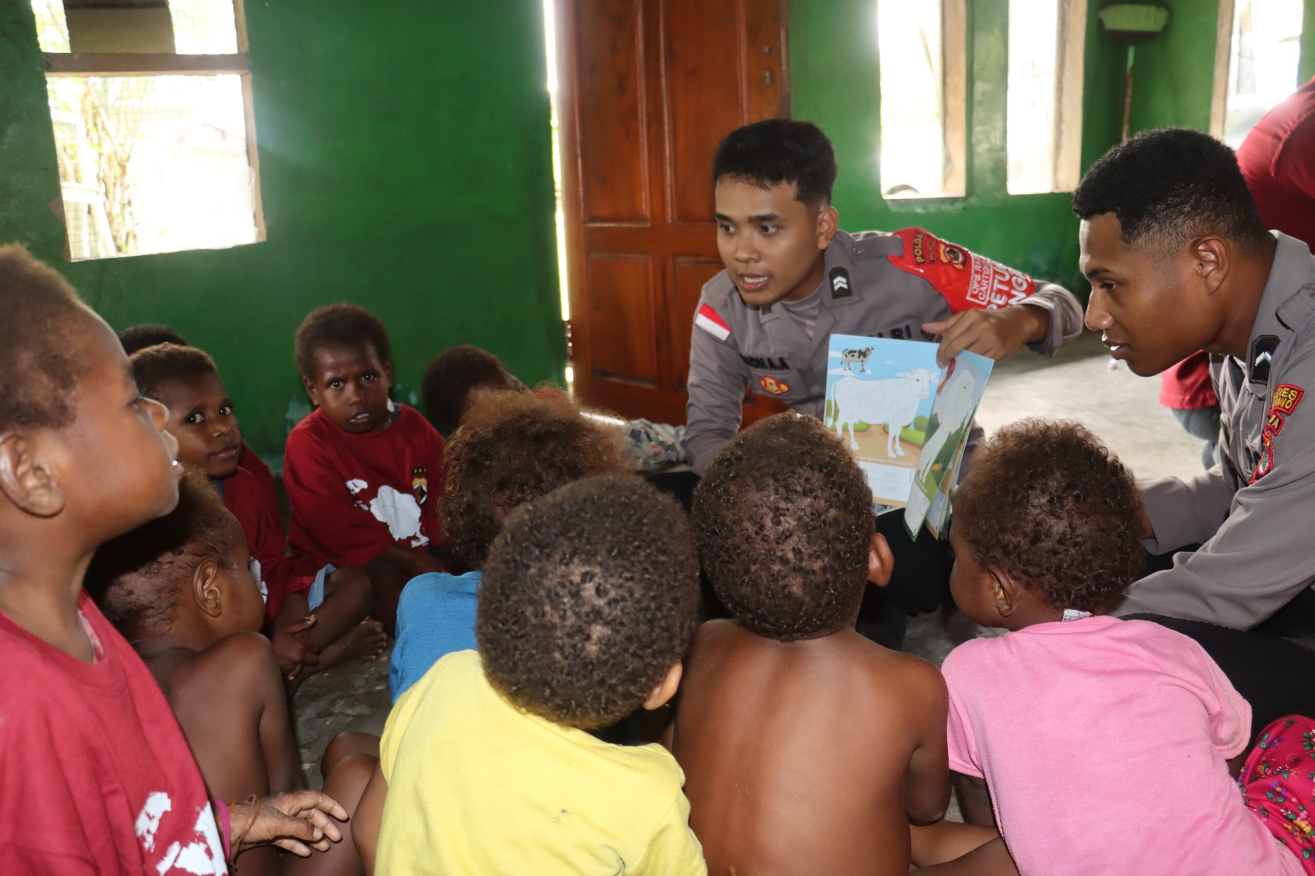 personel secara terjadwal memberikan pelajaran kepada anak-anak di Jalan Sosial Distrik Dekai Kabupaten Yahukimo, Rabu (16/7/25).