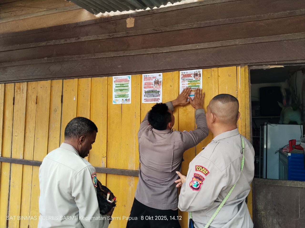 Sarmi – Dalam rangka menjaga keamanan dan ketertiban masyarakat (kamtibmas), Polres Sarmi melalui sat Binmas bersama Satuan Narkoba Polres Sarmi memberikan himbauan tegas kepada seluruh masyarakat dan pelaku usaha terkait larangan penjualan, produksi, maupun konsumsi minuman beralkohol di wilayah Kabupaten Sarmi. Rabu (8/10/25)