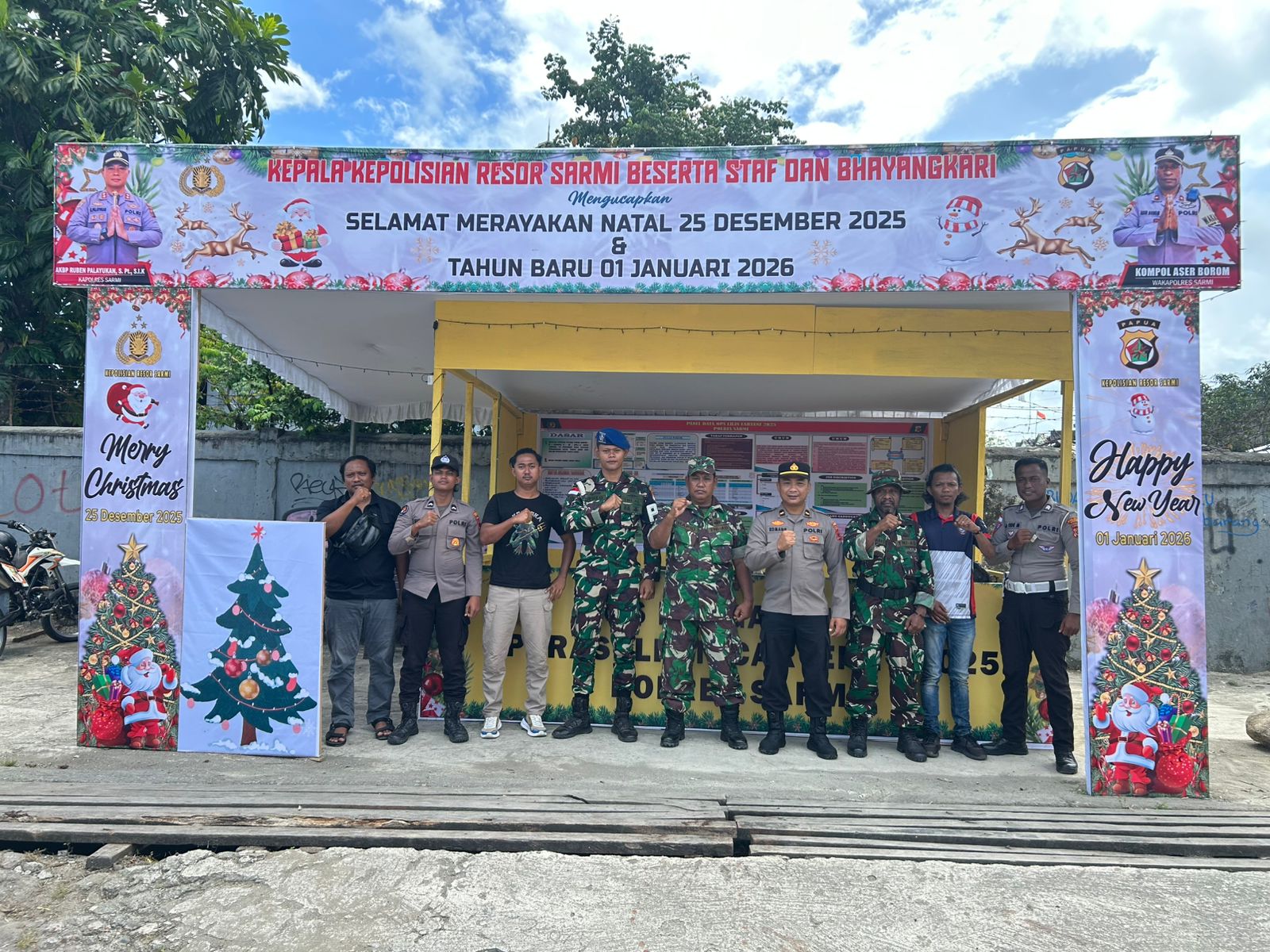 Sarmi – Guna memastikan perayaan Natal dan Tahun Baru berjalan aman, tertib, dan kondusif, Polres Sarmi menempatkan personelnya di sejumlah pos pengamanan Natal dan Tahun Baru yang telah disiapkan di wilayah Kabupaten Sarmi, dengan melibatkan unsur TNI. Selasa (23/12/25)