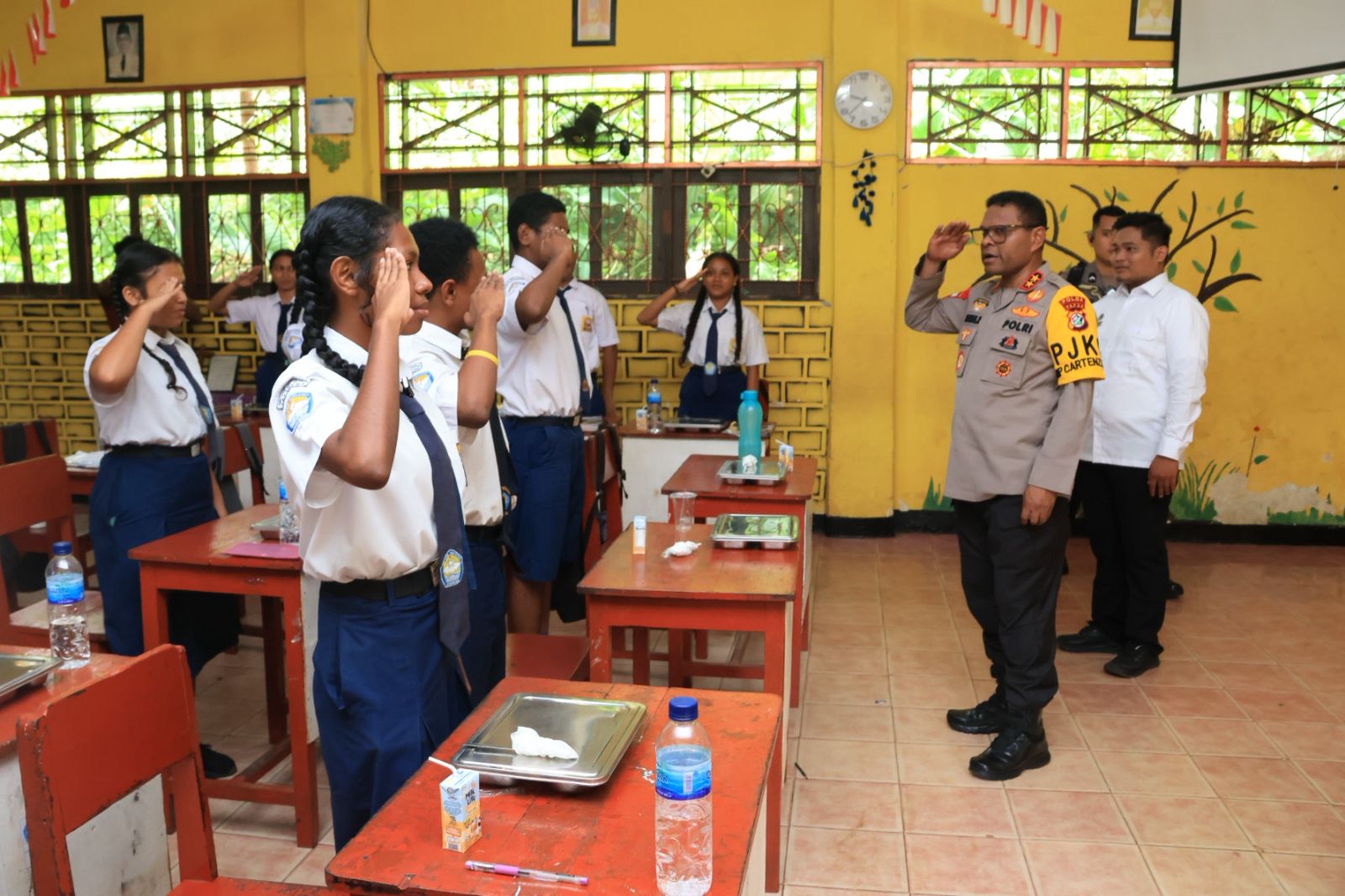 Rangkaian peninjauan diawali dari TK Kemala Bhayangkari Tanjung Ria, kemudian berlanjut ke SD Inpres Dok 8 Atas, TK Tutwuri Handayani Dok 7, hingga SMP dan SMK Paulus Dok 5. Kehadiran Kapolda beserta rombongan disambut hangat oleh para kepala sekolah, guru, dan siswa yang menjadi penerima manfaat program tersebut.