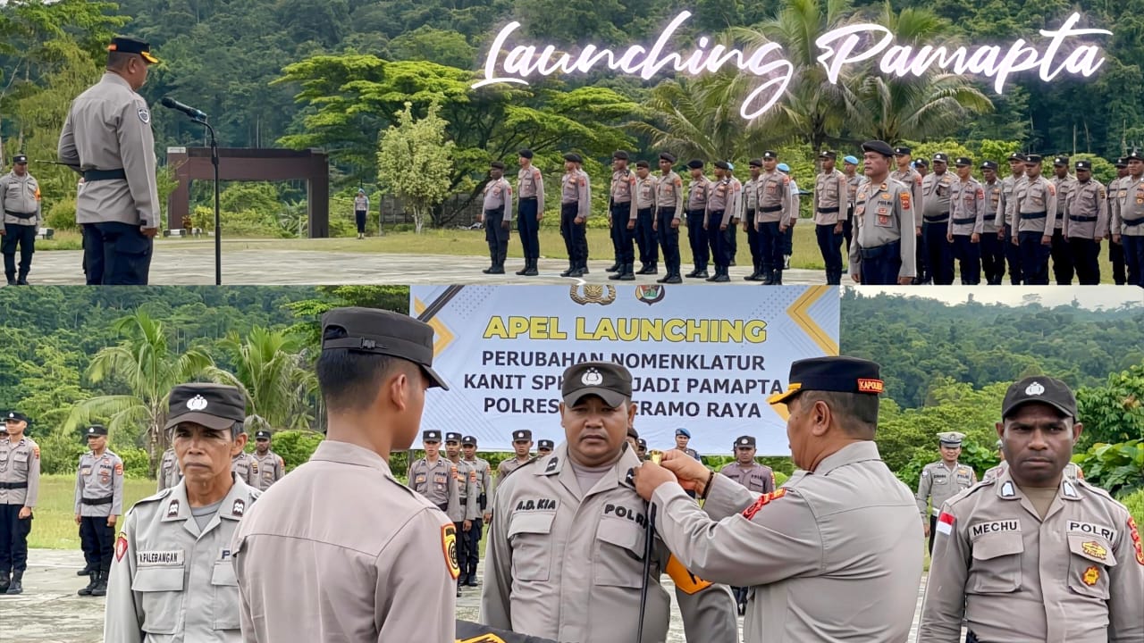 Burmeso – 13/11/2025, Kapolres Mamberamo Raya AKBP. Arifin mempimpin langsung pelaksanaan Apel dalam rangka Louncing perubahan Nomenklatur Kanit SPKT menjadi Pamapta di Polres Mamberamo Raya. Dalam pelaksanaan apel tersebut diikuti oleh PJU Polres Mamberamo Raya dan Seluruh anggota Polres Mamberamo Raya hingga melibatkan Polsek Mamberamo Tengah serta 3 (tiga) orang perwakilan penyematan bad lengan kepada :