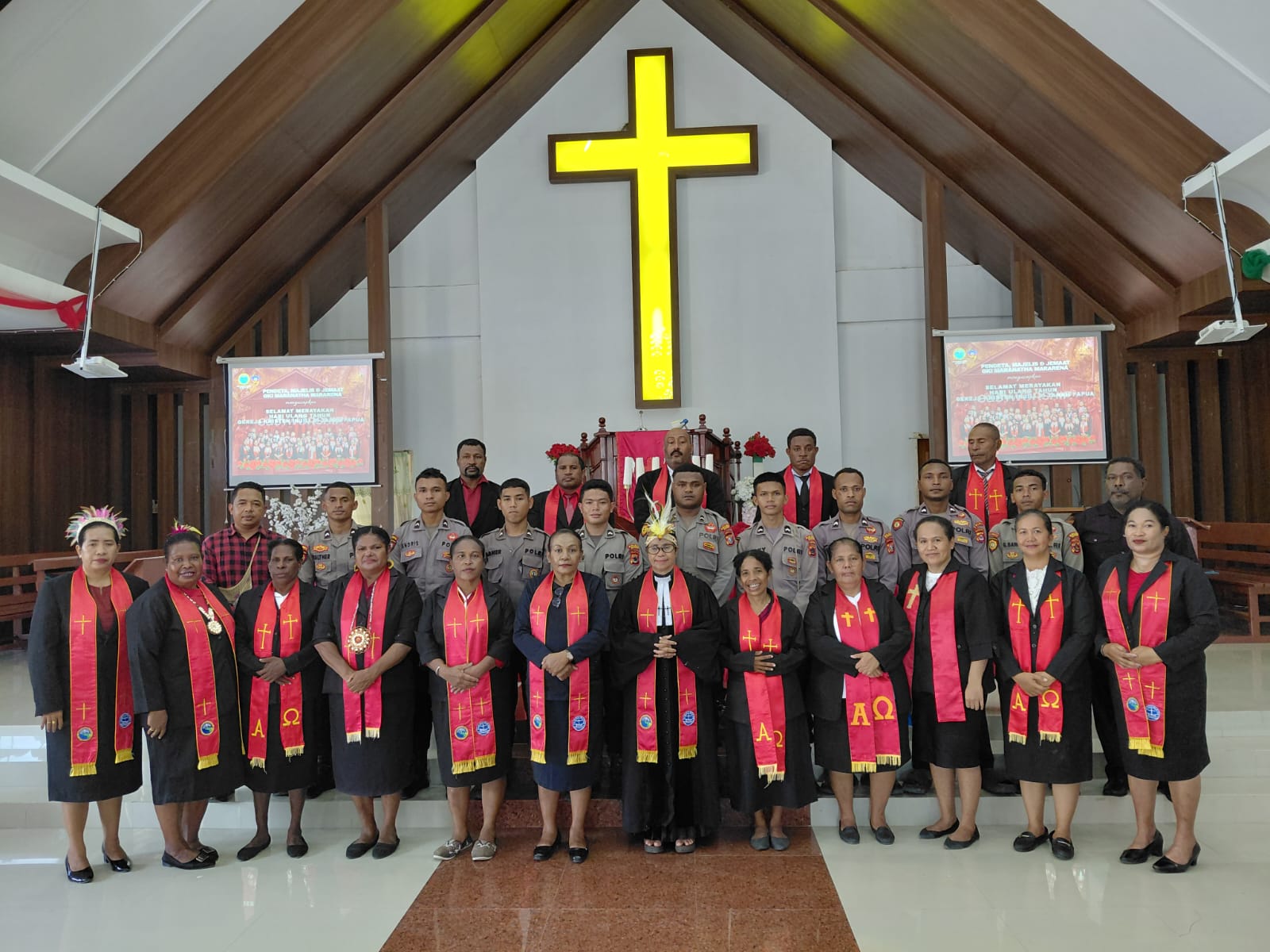 Ibadah dipimpin oleh Ipda Jufry D. Tokoro, dan dilayani oleh Pdt. Agustina B. Gainau, S.Si. Teol. dengan tema khotbah “Pengharapan yang Memerdekakan” (Roma 8:18–30). Tema ini mengingatkan umat agar tetap memiliki pengharapan dalam setiap pergumulan hidup karena di balik penderitaan selalu ada kemuliaan yang Tuhan sediakan bagi orang yang percaya.
