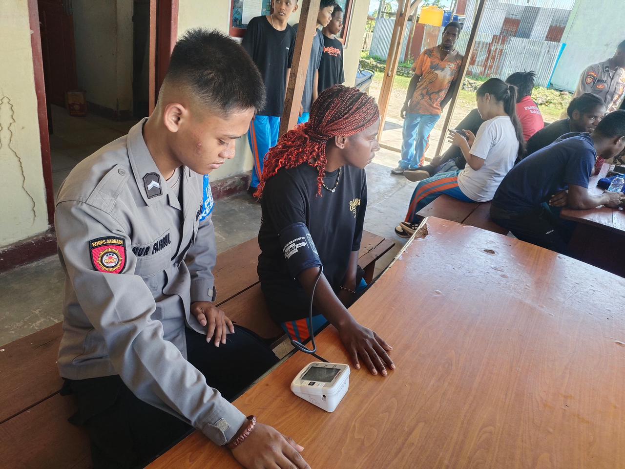 Dalam Kegiatan ini Kasi Dokkes beserta Personel Subsatgas Keladi Sagu memberikan Pelayanan Kesehatan Seperti pemeriksaan tekanan darah,suhu tubuh dan pemberiaan obatan-obatan secara gratis