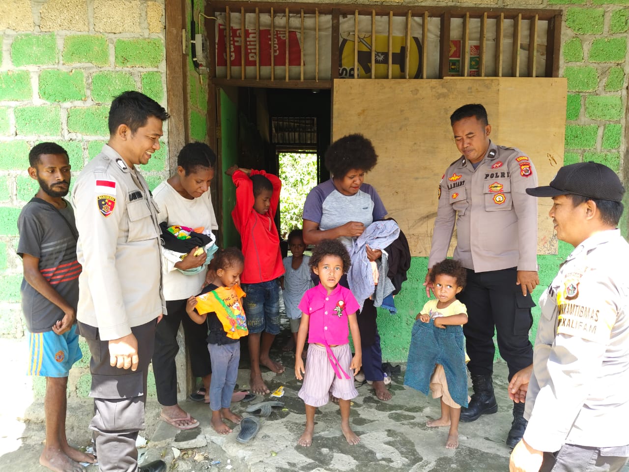 Kegiatan tersebut dipimpin oleh Aipda Nur Ahmad Riyadi bersama Bhabinkamtibmas Kampung Fam Bripka Mufti Nawir, S.H dan personel piket Polsek Waris. Setibanya di Kampung Kali Fam, tim langsung mengumpulkan warga dan mendistribusikan pakaian layak pakai untuk pria dewasa, perempuan dan anak-anak.