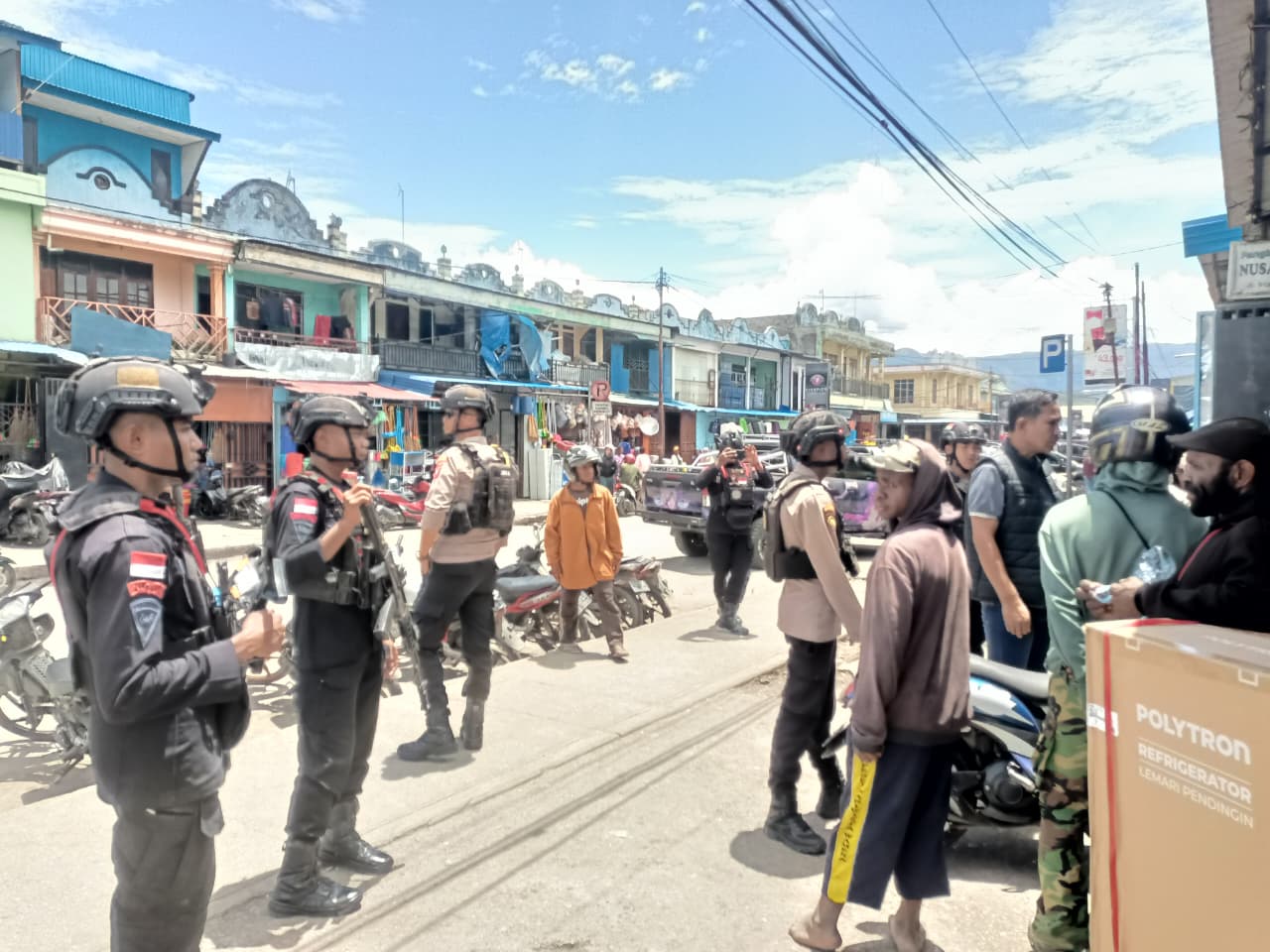 Wamena, 23 Maret 2026 – Dalam rangka pengamanan perayaan Hari Raya Idul Fitri 1447 Hijriah, personel Pos Pengamanan Operasi Ketupat Cartenz 2026 Polres Jayawijaya melaksanakan kegiatan pengisian dan pengamanan di Pos Pengamanan Jalan Irian.