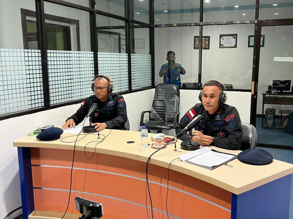 Dialog interaktif ini dipandu oleh presenter RRI Jayapura, Arul Firmansyah, dengan menghadirkan dua narasumber yakni Kabag Ops Sat Brimob Polda Papua Kompol Abdjan Jalal, S.H., dan Kasubbag Binlat Ops Sat Brimob Polda Papua Iptu Riono Mulyo.