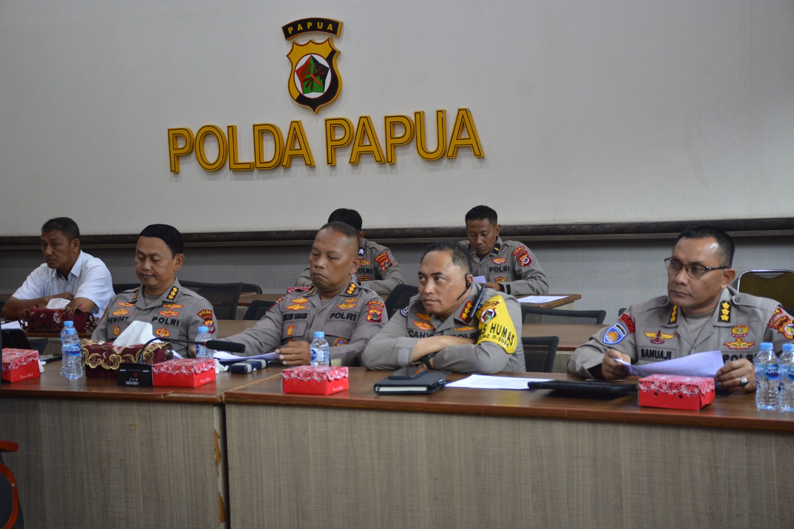 Dari Polda Papua, kegiatan ini diikuti oleh sejumlah pejabat utama, termasuk Irwasda, Karo SDM, Dirbinmas, Dirreskrimsus, Kabidkeu, Kabid Humas, Kabidpropam, serta Penata Kebijakan Madya TK III. Jajaran Polda Papua juga didampingi oleh perwakilan dari Perum Bulog Divisi Regional Papua dan Papua Barat.
