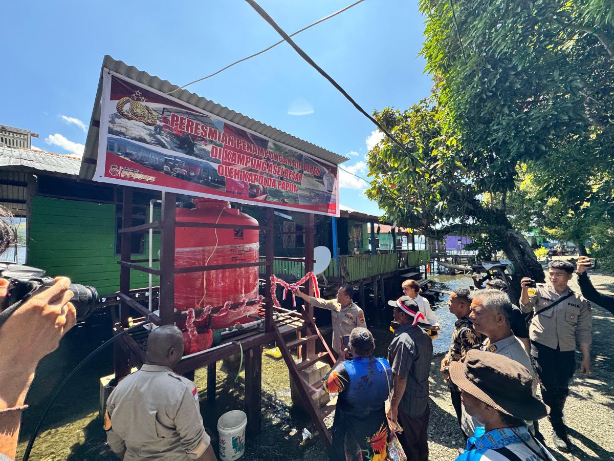 Papua – Kepolisian Daerah (Polda) Papua meresmikan fasilitas penampungan air bersih di Kampung Asei Besar, Distrik Sentani Timur, Kabupaten Jayapura, sebagai bagian dari komitmen Polri dalam mendukung kesejahteraan masyarakat di wilayah Papua, Sabtu (02/08).