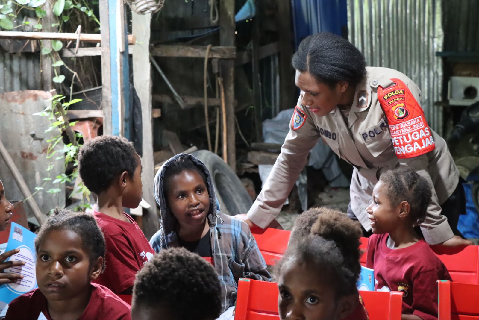 Dalam kegiatan yang digelar di sebuah bangunan sederhana beratap seng, puluhan anak-anak tampak antusias mengikuti pembelajaran yang dibawakan oleh para personel Polisi Pi Ajar. Mereka diajarkan membaca, menulis, berhitung, hingga mendapatkan motivasi belajar yang menyentuh hati.