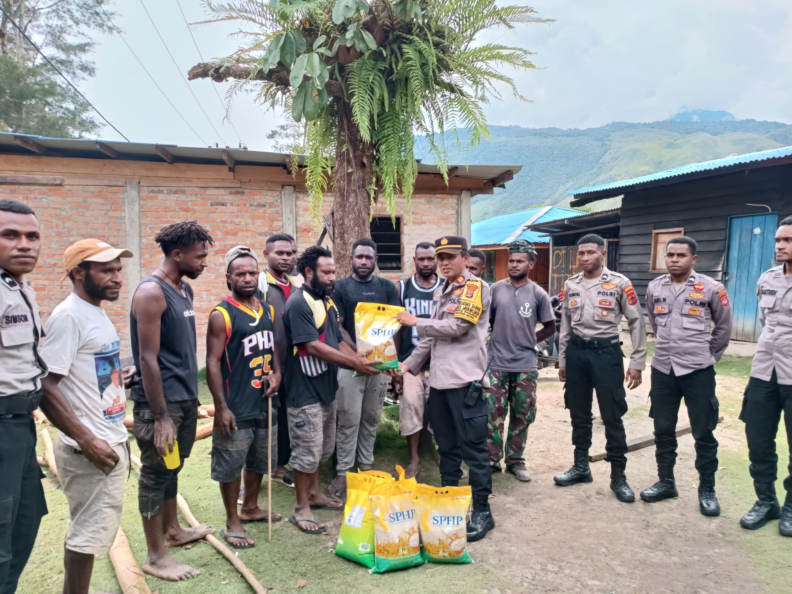 Di akhir kegiatan Kasat Binmas menyerahan bantuan sembako kepada pengurus yaitu Abia Wetapo dan Philipis Lani sebagai bentuk kepedulian.(rd)