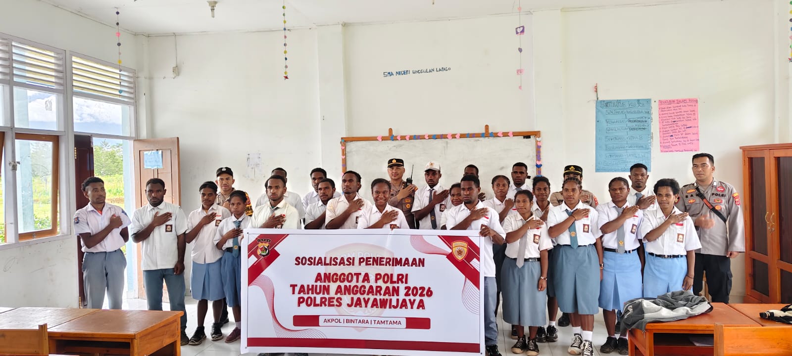 Jayawijaya – Dalam rangka memberikan informasi kepada para pelajar mengenai peluang bergabung menjadi anggota Kepolisian Negara Republik Indonesia, Bagian Sumber Daya Manusia (SDM) Polres Jayawijaya melaksanakan sosialisasi penerimaan terpadu Polri Tahun Anggaran 2026, Selasa (10/03) di SMA Negeri Unggulan Lapago Wamena.