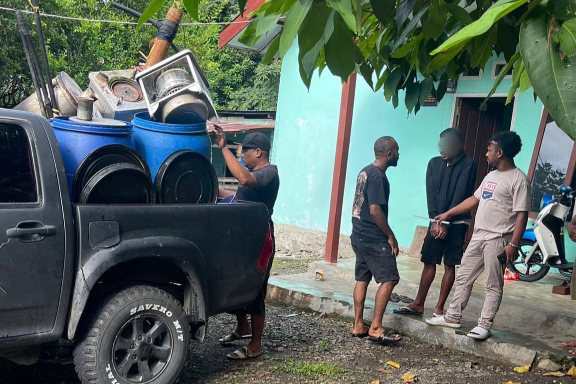Dari hasil penyelidikan, petugas memperoleh informasi mengenai lokasi rumah yang diduga dijadikan tempat produksi minuman keras lokal. Saat dilakukan penggerebekan di lokasi tersebut, petugas berhasil mengamankan tiga orang tersangka masing-masing berinisial: