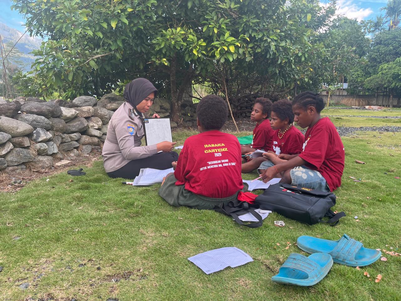 Papua – Wujud kepedulian Polri terhadap peningkatan kualitas pendidikan masyarakat kembali ditunjukkan melalui Satgas Si-Ipar Operasi Rasaka Cartenz 2025 Polres Jayapura yang menggelar kegiatan pembelajaran bersama anak-anak dan mama-mama di Kompleks Bahtera Hebron, Kampung Doyo Baru, Distrik Waibu, Rabu (24/09).