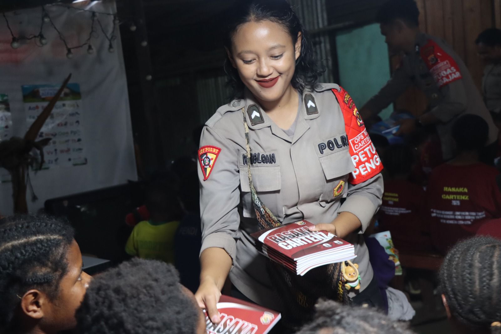 Dalam kegiatan tersebut, personel Subsatgas Si Ipar membagikan buku bacaan dan alat tulis kepada anak-anak, serta memberikan motivasi agar semangat belajar tetap tinggi meskipun dengan segala keterbatasan yang ada di daerah pedalaman. Masyarakat tampak antusias menyambut kedatangan personel Polri yang datang dengan penuh kehangatan.
