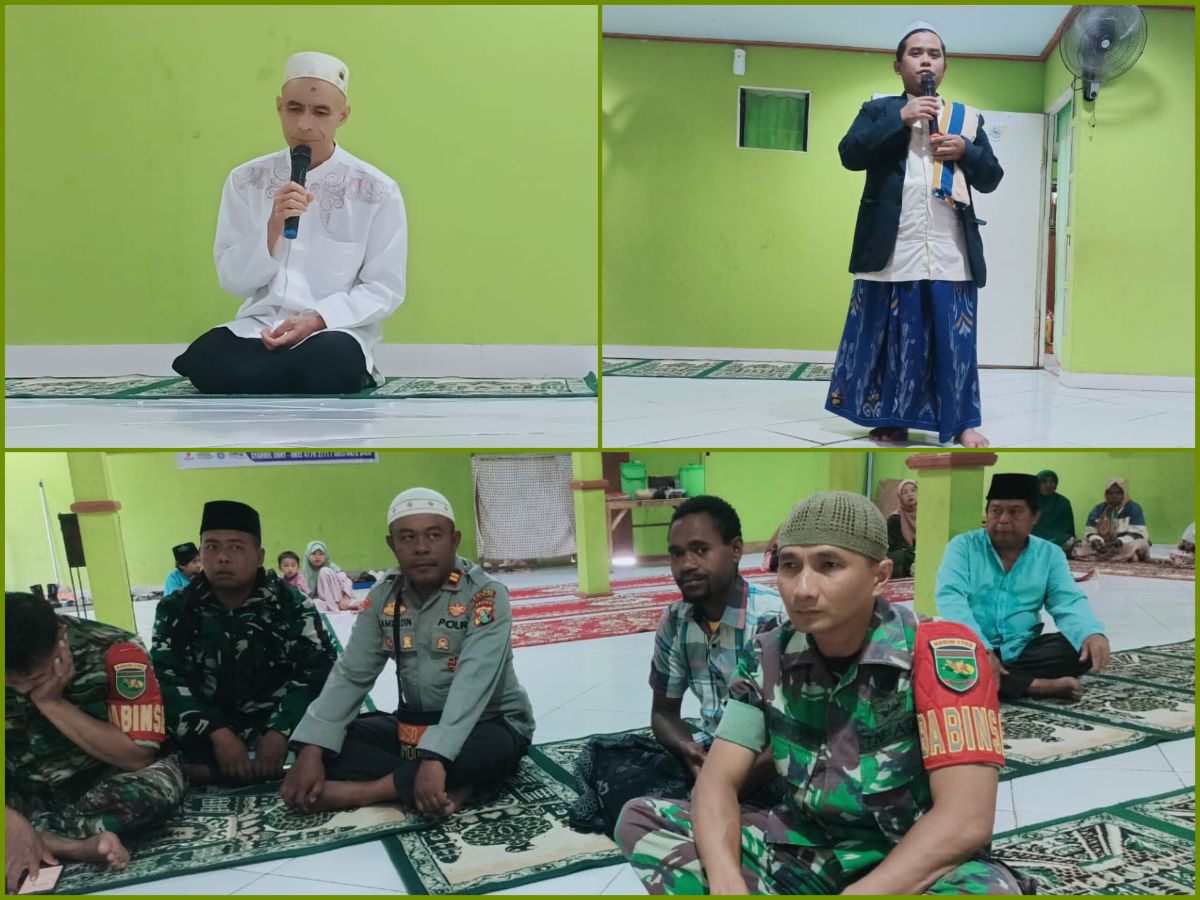 Kegiatan tersebut menghadirkan penceramah Ustaz Agus Muayyad, S.Pdi, dan dihadiri oleh unsur TNI-Polri, pengurus masjid, serta warga Muslim dari Pasar Kimbim dan Kampung Araboda.