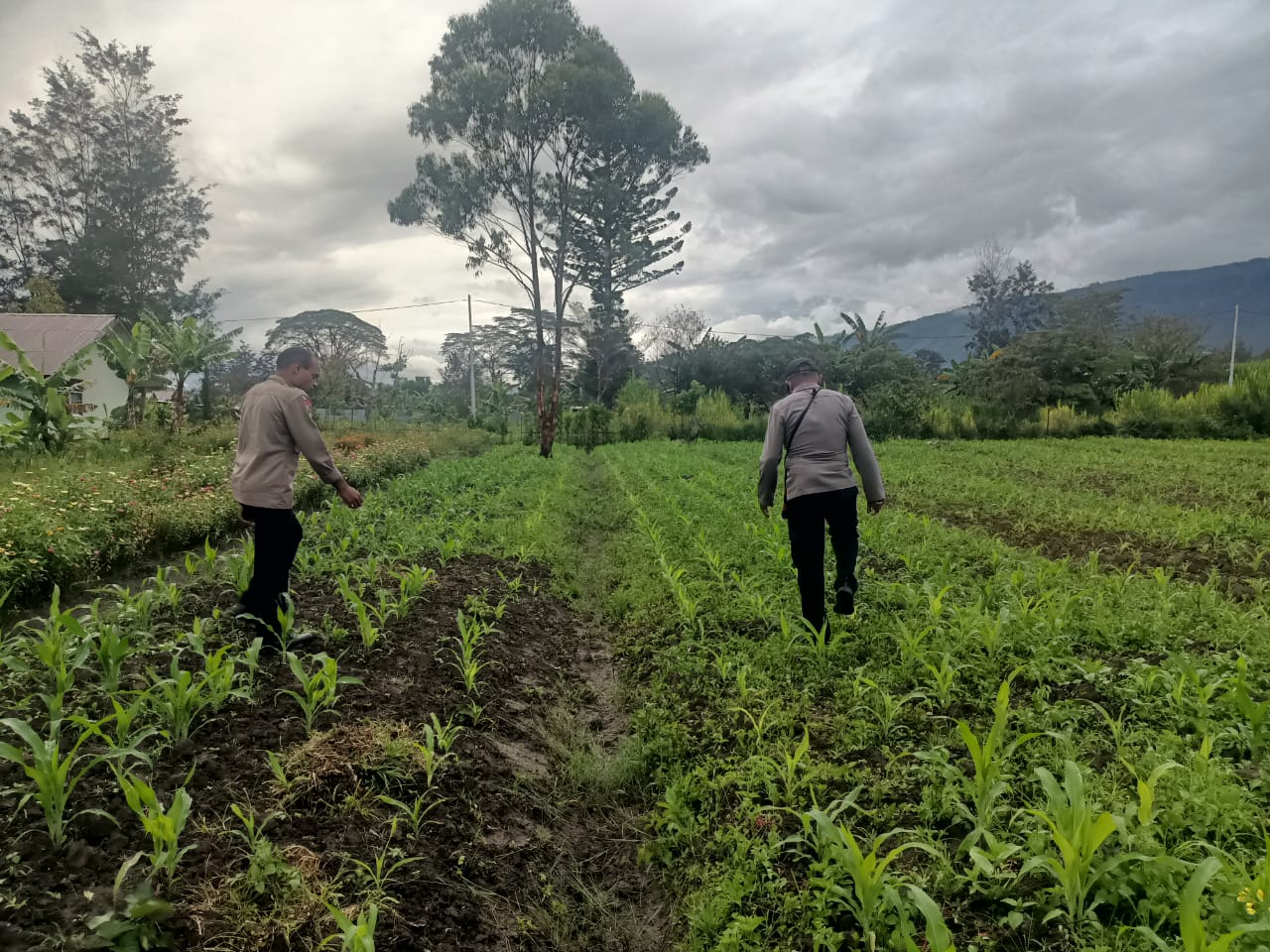 Kegiatan ini dipimpin langsung oleh Kapolsek Asologaima Ipda Samladin, bersama personel Bripda Emanuel Rizal Veldo Heroka dan Bripda Jhon Kilungga. Rombongan tiba di lokasi sekitar pukul 15.30 WIT dan langsung meninjau perkembangan pertumbuhan tanaman jagung pada lahan seluas 70 x 150 meter yang telah ditanami sejak 16 Oktober 2025.