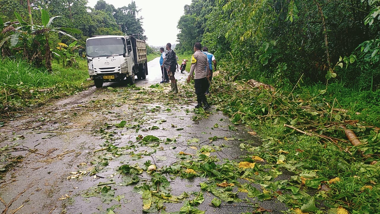 Sesampainya di lokasi, Kapolsek bersama anggota dan warga bergotong royong memotong batang serta dahan pohon, kemudian menyingkirkan material yang menutupi jalan. Berkat respon cepat dan kerja sama seluruh pihak, jalur Trans Jayapura–Sarmi kembali dapat dilalui kendaraan dengan aman.
