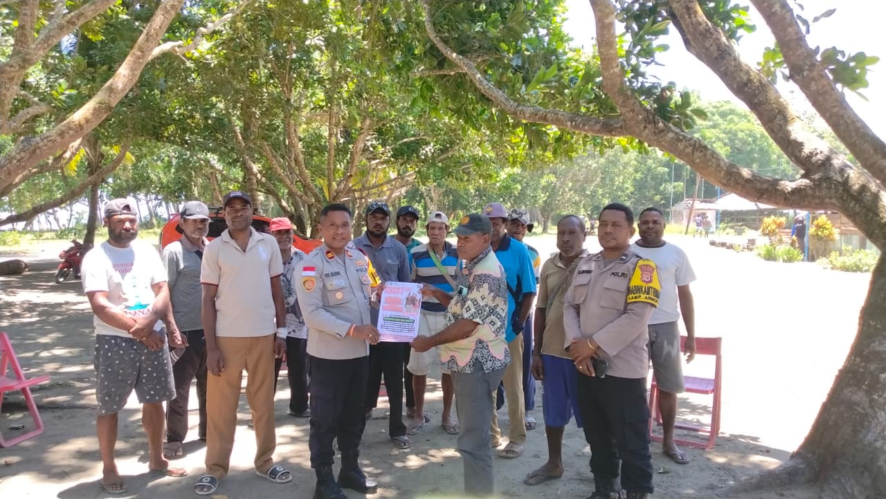 Sarmi – Dalam rangka menjaga keamanan dan ketertiban masyarakat (kamtibmas) yang aman dan kondusif menjelang perayaan Natal dan Tahun Baru 2025, Polsek Bonggo melaksanakan kegiatan sosialisasi pelarangan, penanganan, dan pengawasan terhadap peredaran minuman keras (miras) di wilayah hukumnya, pada Jumat, 17 Oktober 2025.