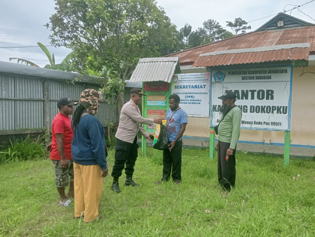 Selanjutnya, tim mengunjungi Kantor Kampung Dokopku dan berdialog dengan Kepala Kampung Yerri Hubi. Warga diajak aktif menjaga keamanan dan ketertiban lingkungan serta melaporkan kegiatan mencurigakan.