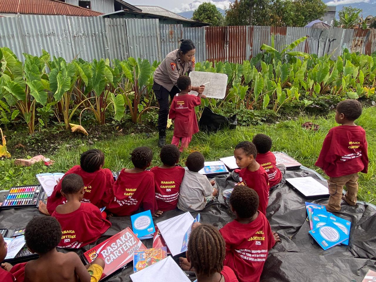 Rasaka Cartenz 2025: Polisi Ajak Anak Wamena Kenal Huruf Lewat Cara Seru
