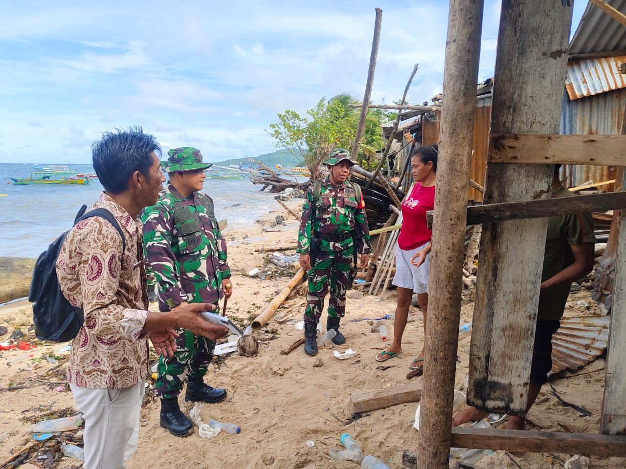 Bitung – Komandan Kodim 1310/Bitung Letkol Inf Dewa Made DJ, turun langsung meninjau rumah warga yang ambruk akibat angin kencang dan ombak pasang di Pesisir Pantai Pulau Gangga Kec. Likupang Barat Kab. Minahasa Utara, Kamis (08/01/2026).