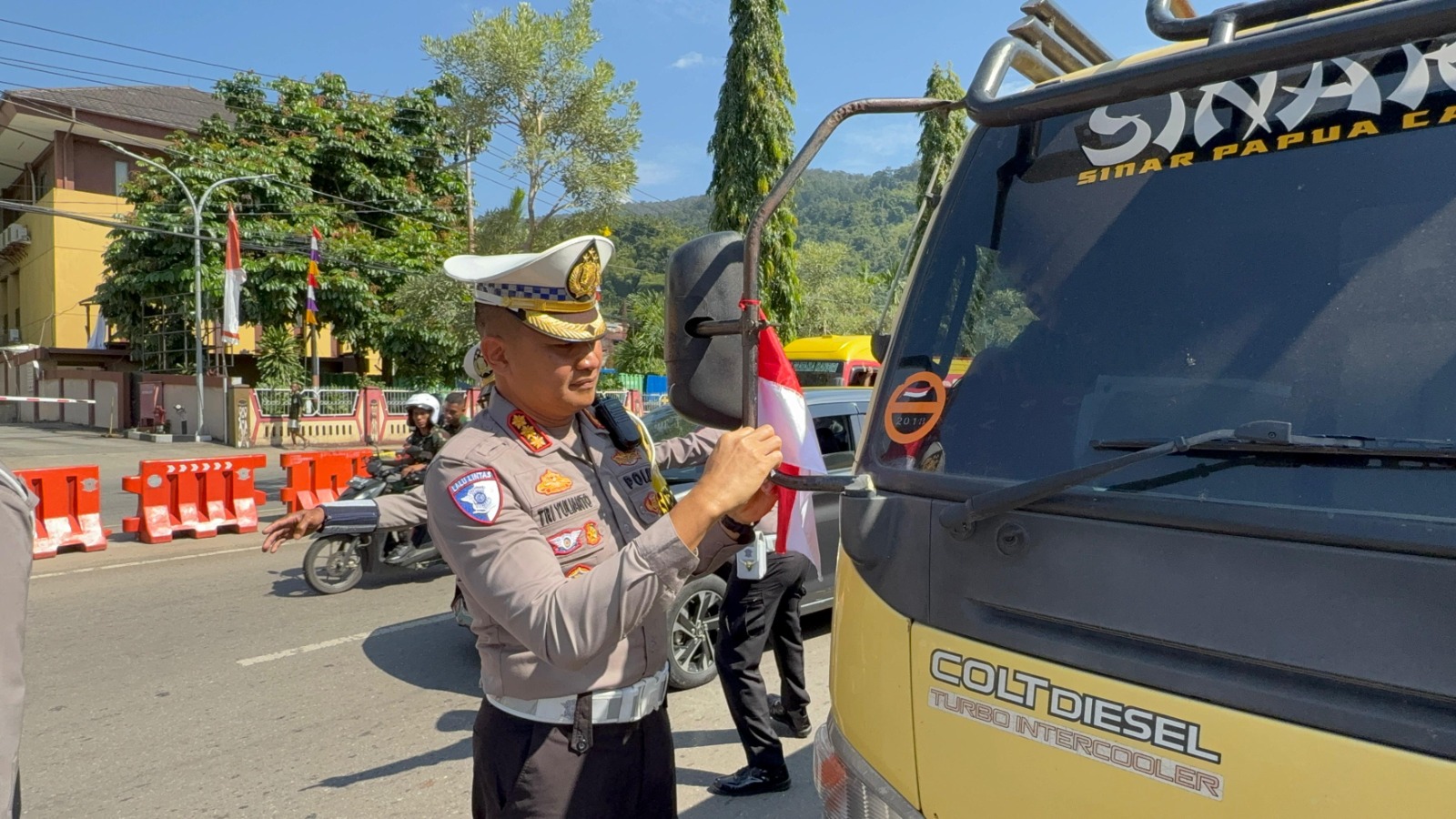 “Menindaklanjuti perintah Bapak Kapolda Papua, kami mengimbau seluruh masyarakat untuk memasang bendera Merah Putih, baik di rumah, kantor, maupun di kendaraan roda dua dan roda empat sebagai wujud semangat nasionalisme,” jelas Kombes Tri Yulianto.