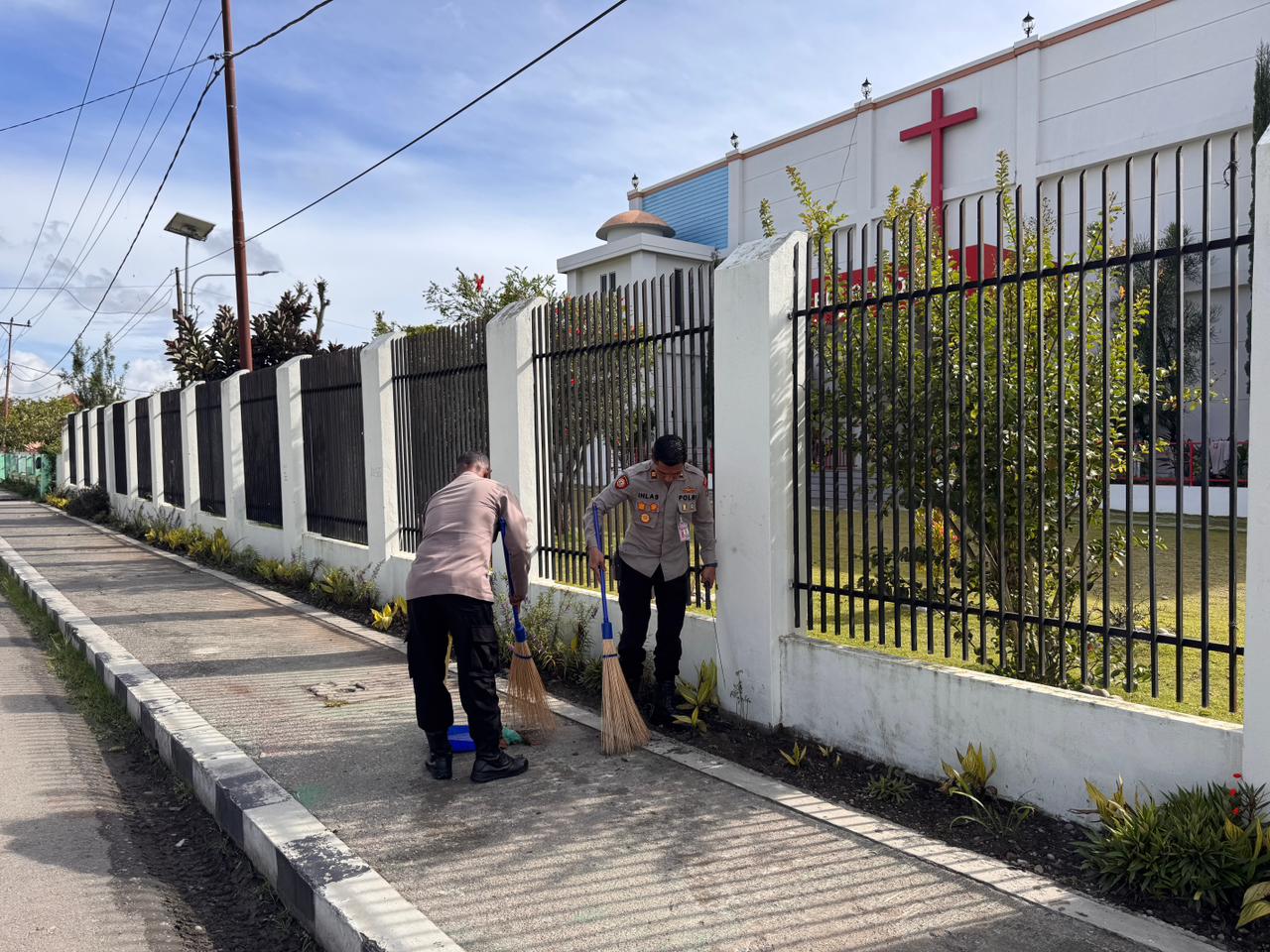 Dalam kegiatan tersebut, personel Polsek Kawasan Bandara melaksanakan kerja bakti dengan membersihkan area halaman gereja. Kegiatan ini merupakan bentuk kepedulian Polri dalam menciptakan lingkungan yang bersih dan nyaman bagi jemaat dalam melaksanakan ibadah, khususnya menjelang perayaan Paskah.