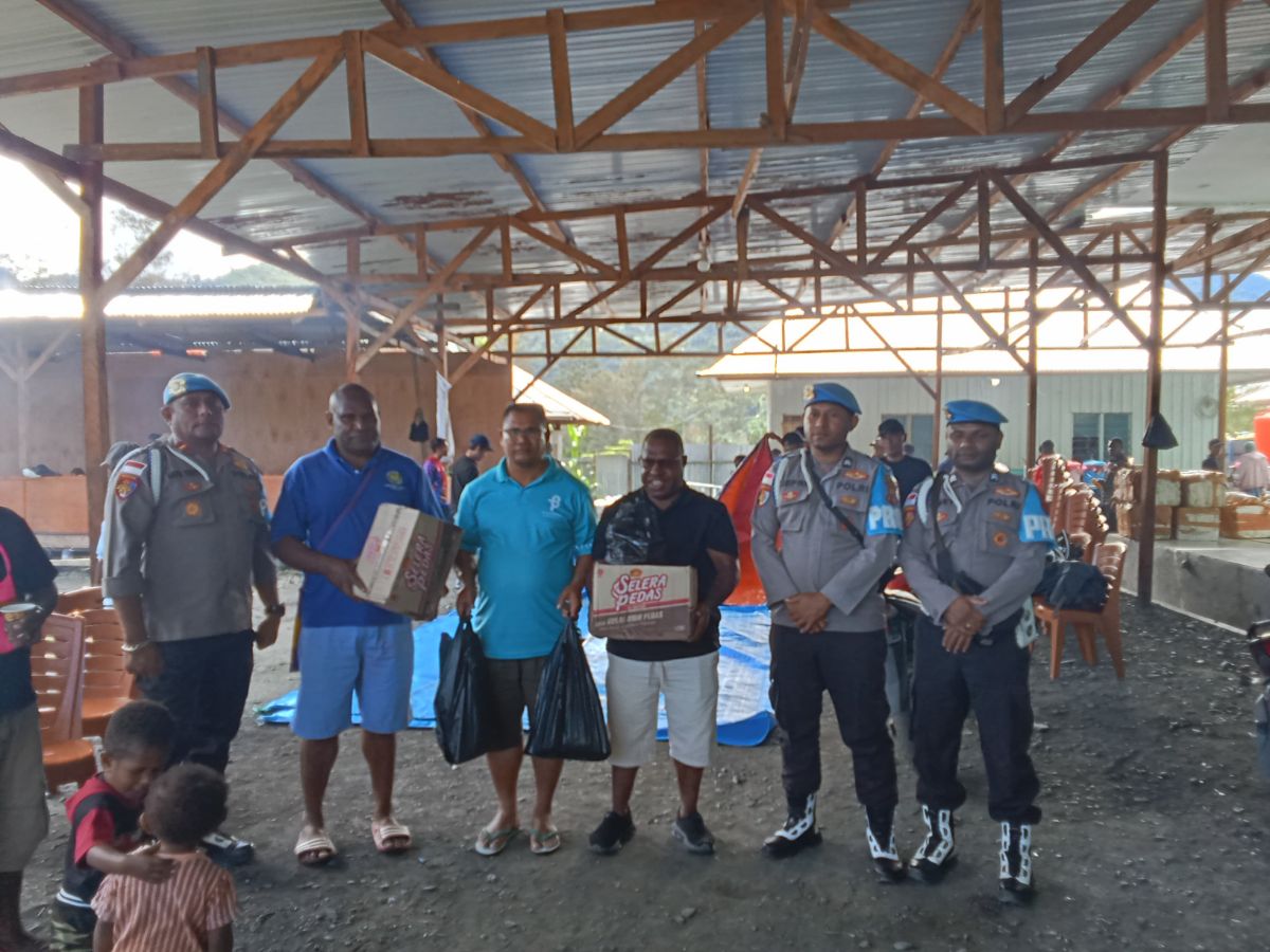 Sat binmas dan sie propam polres tolikara gelar bhakti sosial untuk penyandang disabilitas dan panitia hut jemaat gereja ebenhaezer ke-49