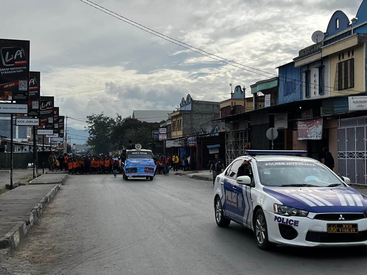 Wamena – Personel Satuan Lalu Lintas Polres Jayawijaya melaksanakan pengawalan kegiatan jalan santai dalam rangka memperingati Hari Ulang Tahun Yayasan Pendidikan Kristen (YPK) ke-64 di Tanah Papua yang berlangsung di Kota Wamena, Kabupaten Jayawijaya.