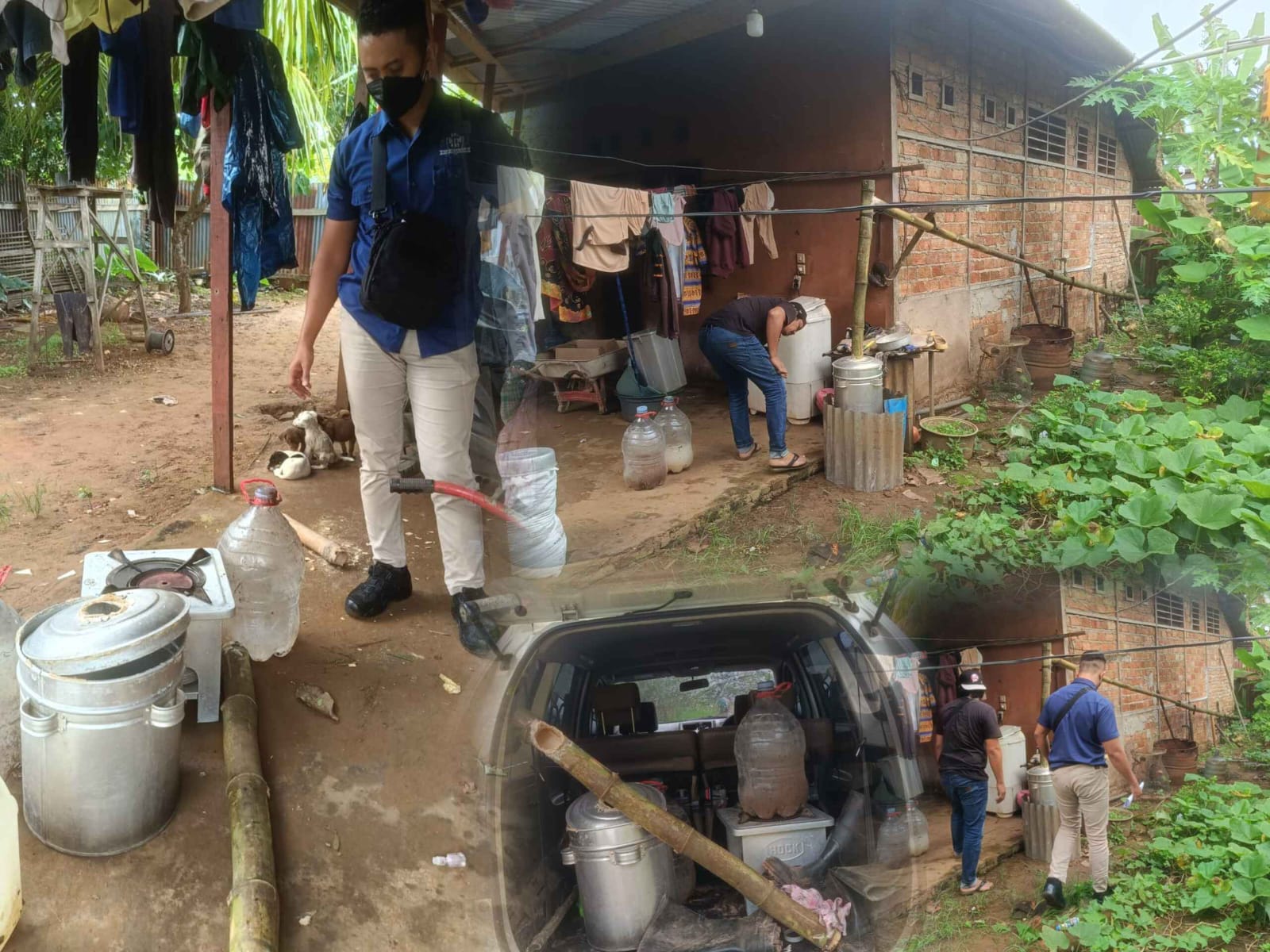 Dalam operasi tersebut, petugas berhasil mengamankan sejumlah barang bukti berupa satu jerigen berisi 5 liter sopi, dua botol galon Le Minerale ukuran besar, satu dandang sedang, satu kompor hock 22 sumbu, dan satu bambu sepanjang 2 meter yang diduga digunakan dalam proses penyulingan sopi.