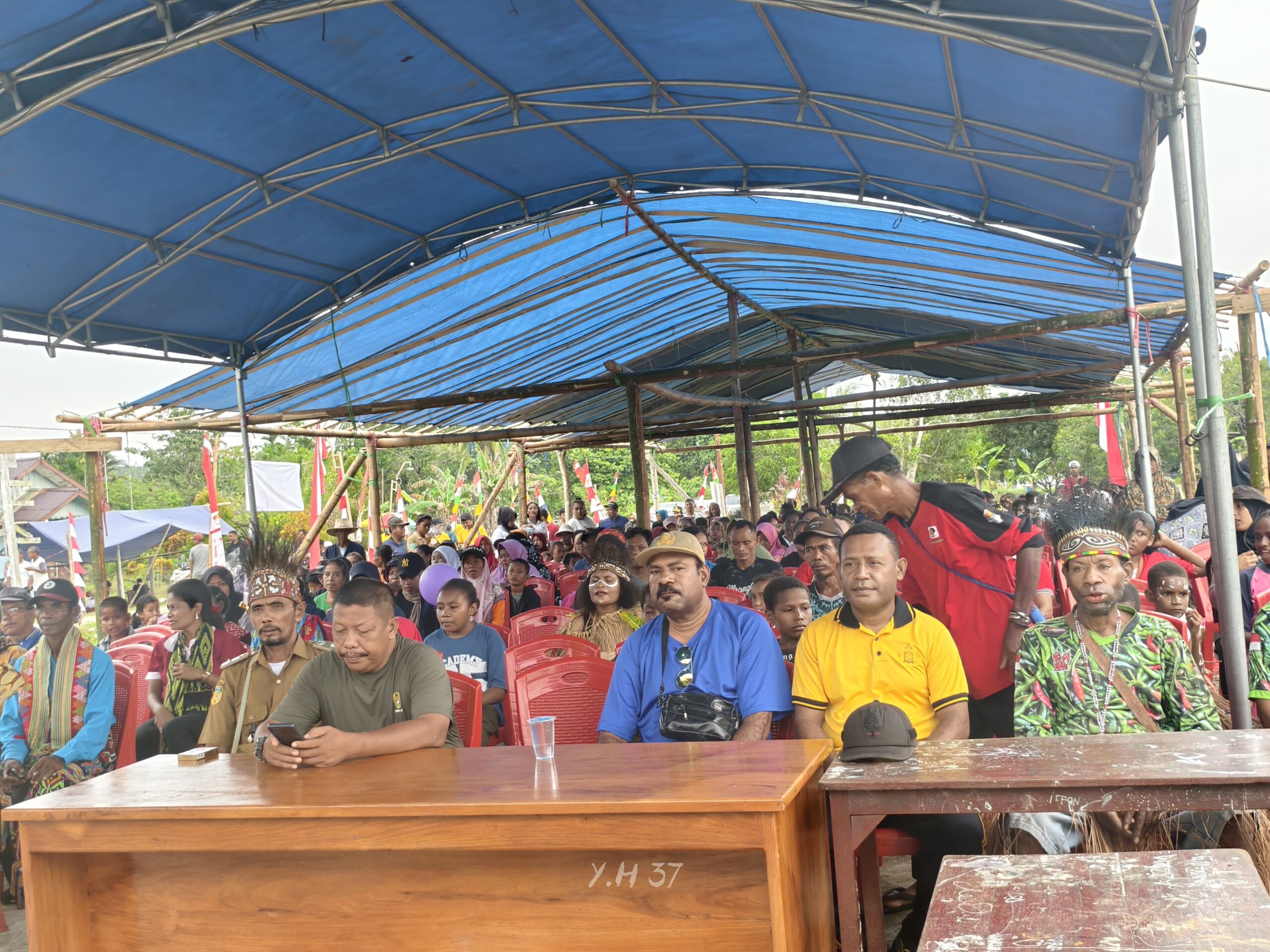 Kegiatan tersebut turut dihadiri oleh Danramil Bonggo Kapten Inf. Sudarno bersama dua anggota, aparat distrik, aparat kampung, Bamuskam, serta warga masyarakat Kampung Tetom Jaya. Suasana tampak meriah dengan iringan Drum Band SMA Negeri 2 Sarmi yang turut memeriahkan jalannya kegiatan.