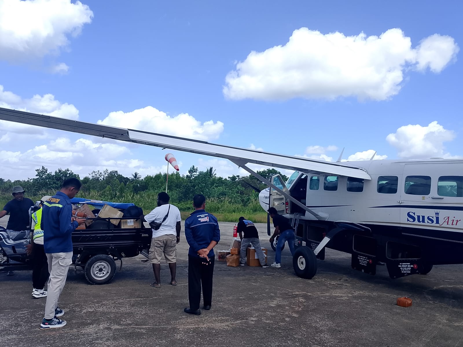 Pesawat Susi Air PK-VVS yang melayani rute perintis di wilayah selatan Papua, mendarat pada pukul 13.01 WIT dan membawa 11 orang penumpang. Setelah proses pemeriksaan dan penurunan penumpang selesai, pesawat kembali lepas landas pada pukul 13.10 WIT dengan membawa 12 orang penumpang menuju Merauke.