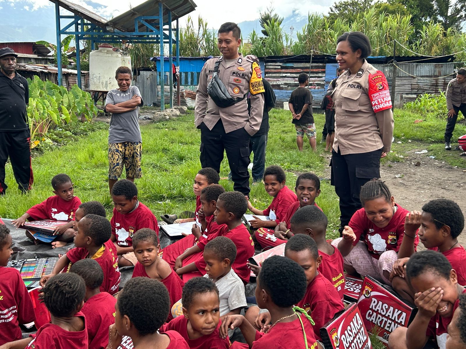 “Melalui program Polisi Pi Ajar ini, kami ingin menanamkan semangat belajar kepada anak-anak sejak dini sekaligus membangun kedekatan emosional antara Polri dan masyarakat. Harapannya, anak-anak Papua dapat tumbuh menjadi generasi yang cerdas, berkarakter, dan memiliki masa depan yang lebih baik,” ujar IPTU Benyamin Tandipayung.