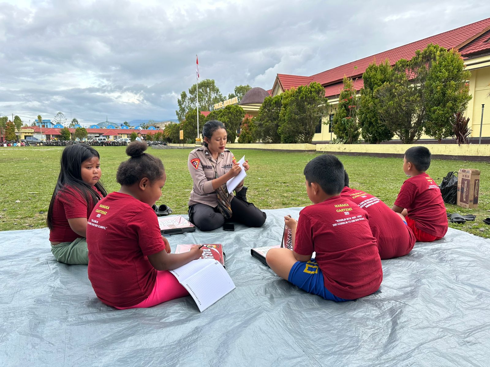 Papua — Dalam rangka mendukung keberlangsungan pendidikan anak-anak di wilayah Papua, Subsatgas SI-IPAR (Polisi Pi Ajar) Polres Jayawijaya menggelar kegiatan belajar bersama anak-anak di halaman Mako Polres Jayawijaya. Kegiatan ini merupakan bagian dari Operasi Rasaka Cartenz 2025 yang menitikberatkan pada pendekatan humanis dan pembinaan masyarakat, khususnya di bidang pendidikan. Kamis, (10/07) Sore.