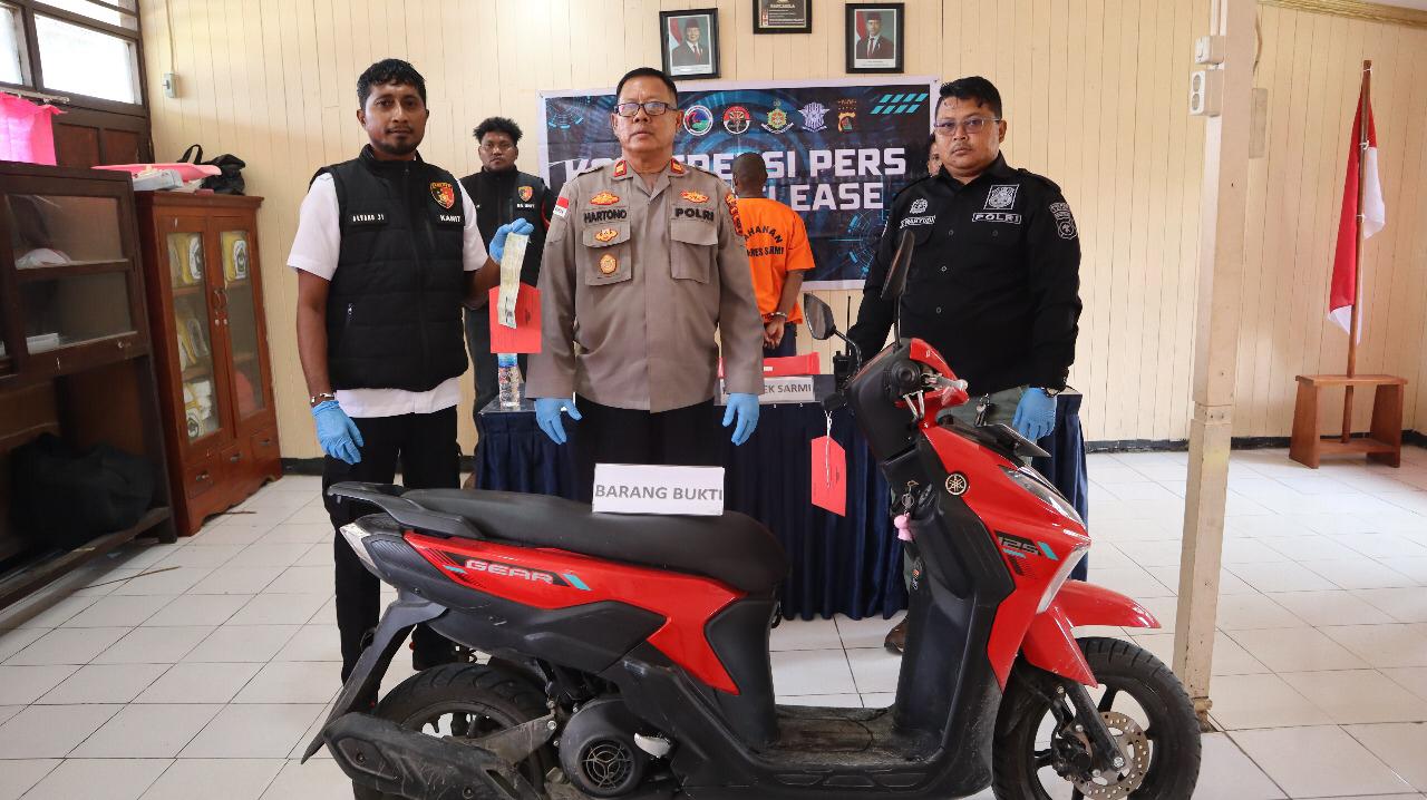 Tersangka “HW” alias “E” diketahui mengambil sepeda motor milik korban Siti Rukiyah yang saat itu terparkir di garasi rumah kos. Dengan cara mendorong motor keluar dari lokasi, pelaku membawa kendaraan tersebut menuju Kampung Tanjung Batu, Distrik Sarmi Timur, lalu menutupinya dengan daun-daunan agar tidak terlihat oleh warga sekitar.