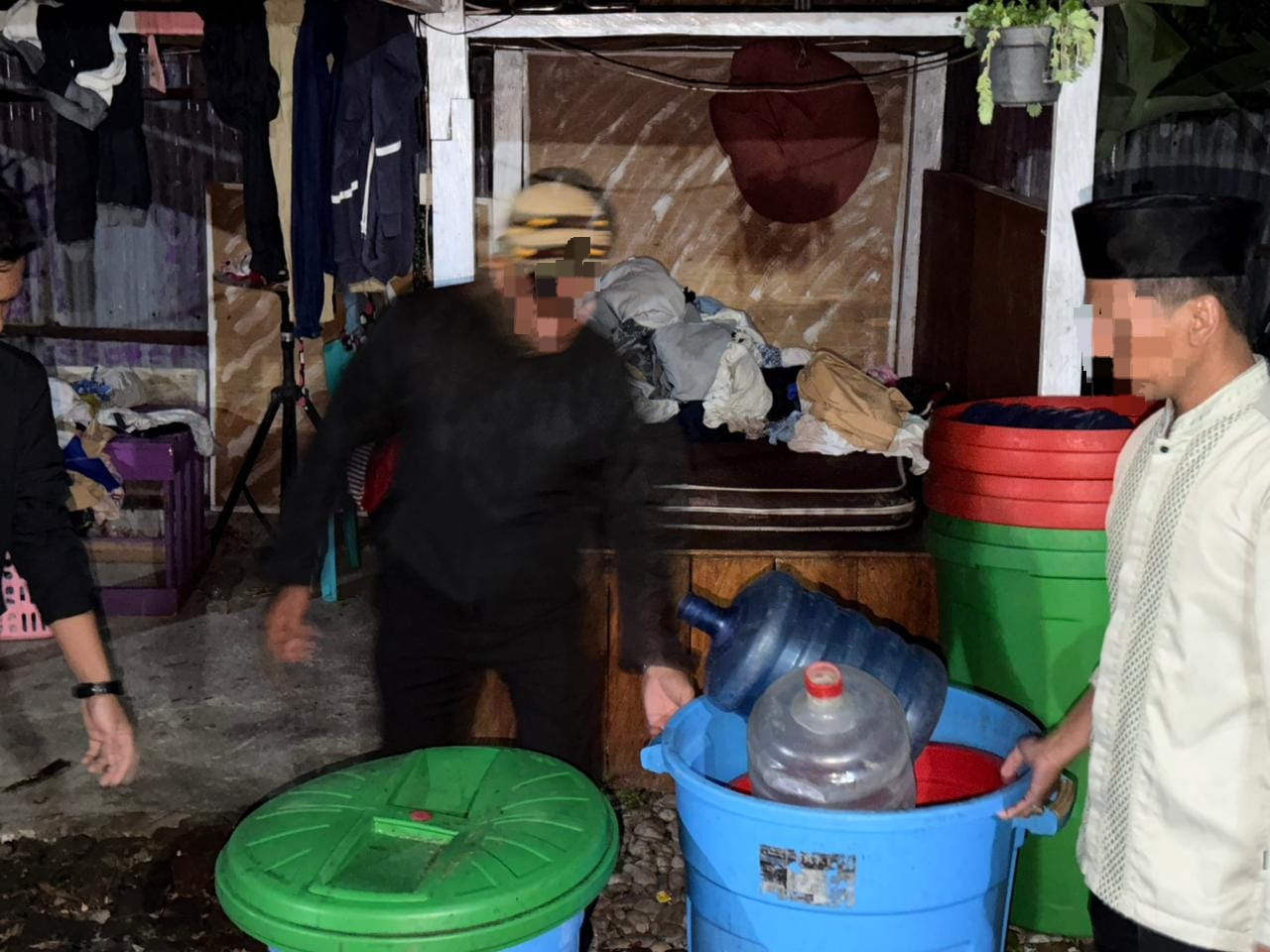 Dalam kegiatan tersebut, petugas melakukan penggeledahan di salah satu rumah yang dicurigai dan menemukan sejumlah peralatan produksi minuman keras lokal jenis Cap Tikus (CT). Selain itu, petugas juga mengamankan seorang perempuan berinisial N.O.O. (36), yang diduga sebagai pemilik sekaligus pengelola tempat produksi tersebut.