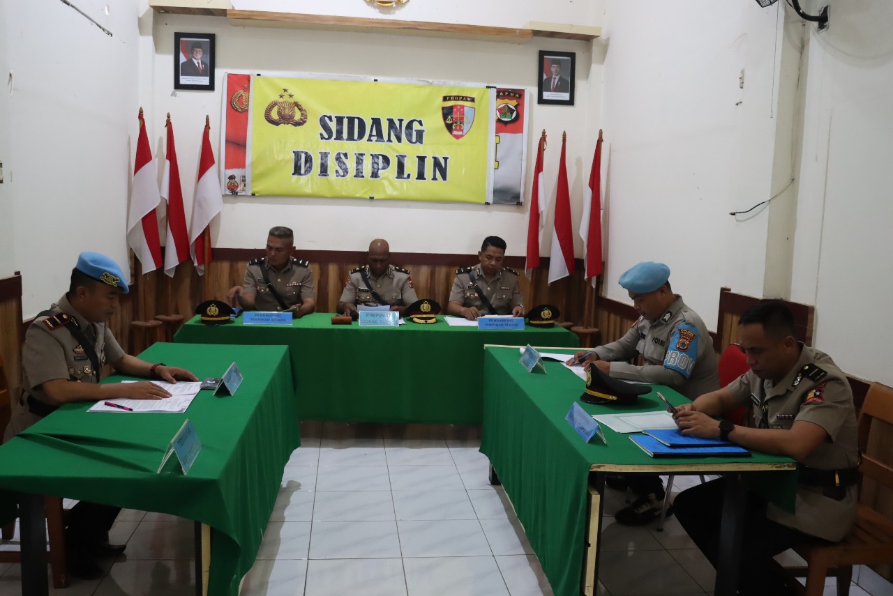 Sarmi – Polres Sarmi menggelar sidang disiplin terhadap tiga personelnya yang diduga melakukan pelanggaran disiplin, bertempat di Aula Mapolres Sarmi pada Selasa. Sidang ini dipimpin langsung oleh Wakapolres Sarmi Kompol Aser Borom selaku Ketua Sidang. Selasa (9/12/25)