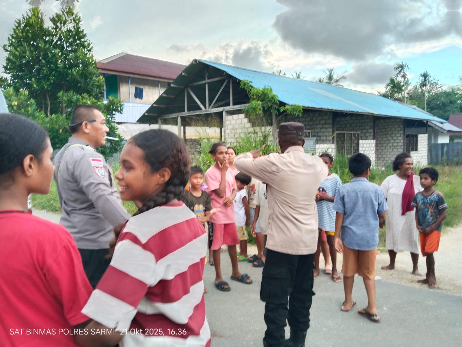 Sarmi – Satuan Pembinaan Masyarakat (Sat Binmas) Polres Sarmi melaksanakan kegiatan Sosialisasi Pelarangan Memainkan Meriam Bambu, Meriam Spirtus, dan Petasan di wilayah Kelurahan Sarmi Kota, Mararena, dan Kelapa Satu, Kabupaten Sarmi, pada Selasa, 21 Oktober 2025.