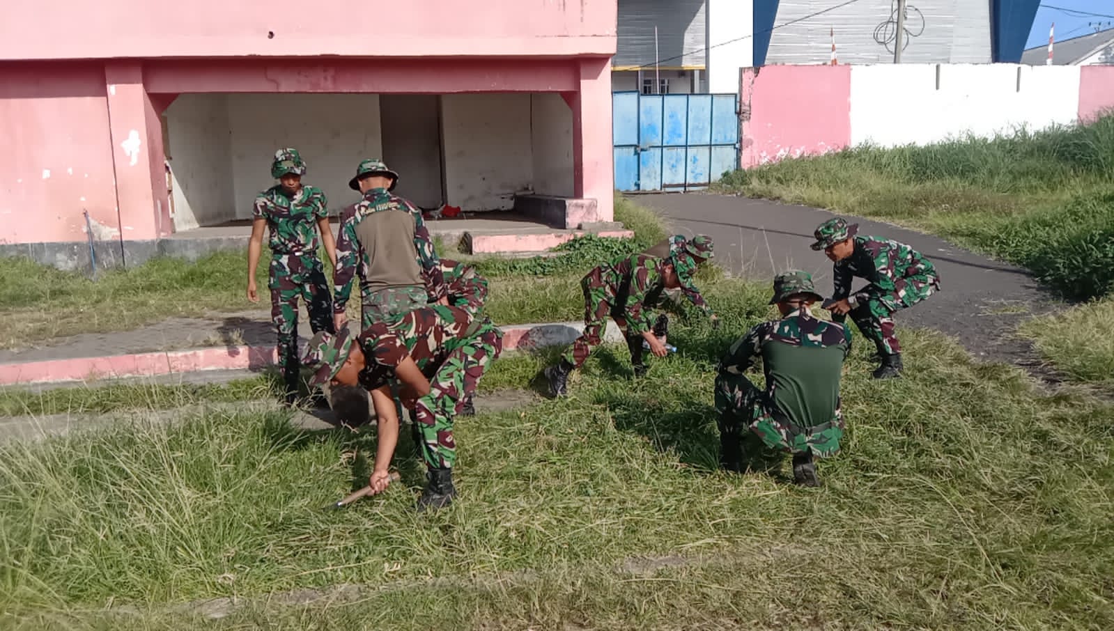 Wujud Nyata Gerakan Indonesia Asri, Personel Kodim 1310/Bitung dan Yonif TP 916/BS Kerja Bakti Bersih Lingkungan dan Fasilitas Umum