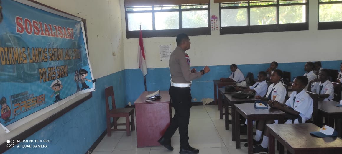 Pihak sekolah menyampaikan apresiasi kepada Sat Lantas Polres Sarmi atas kegiatan edukatif tersebut.